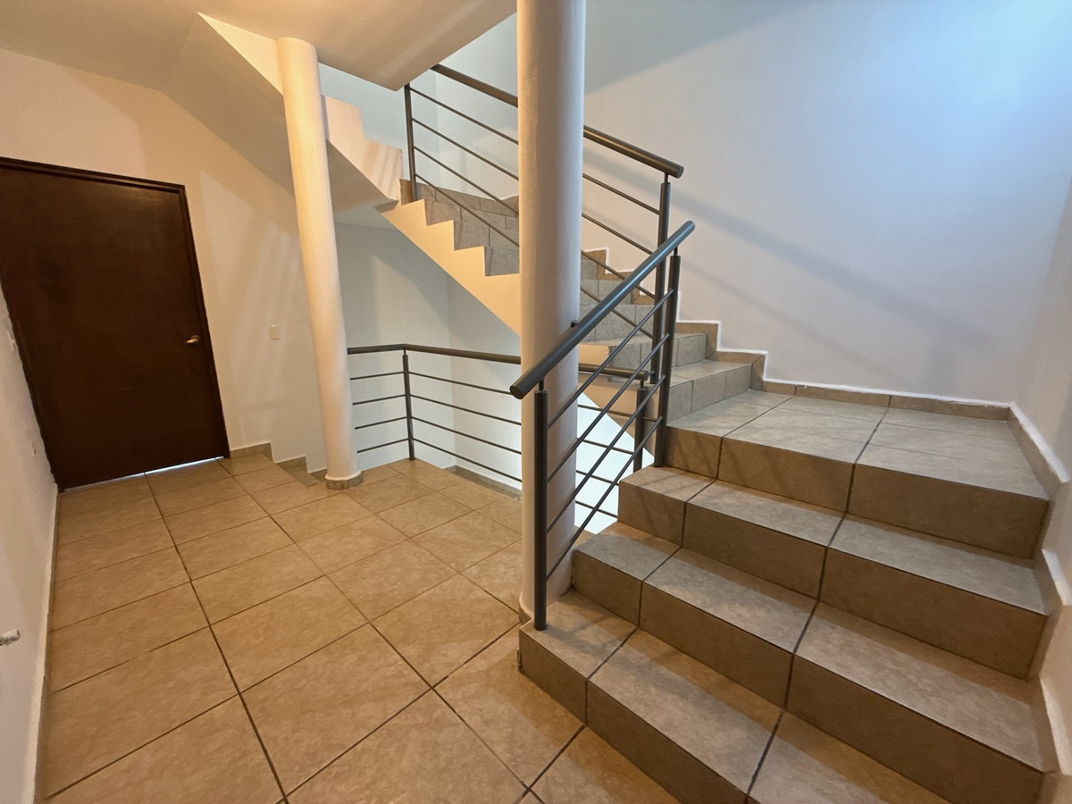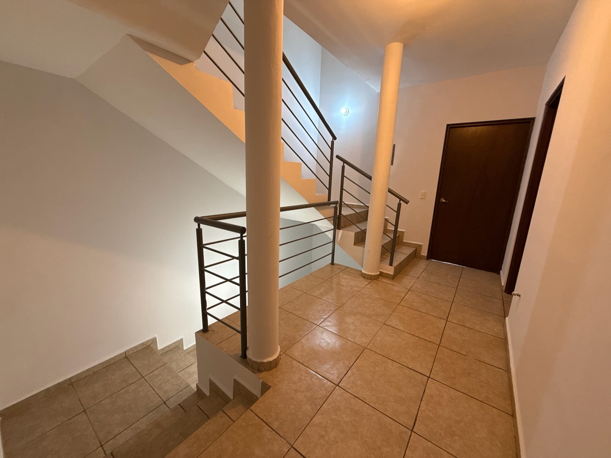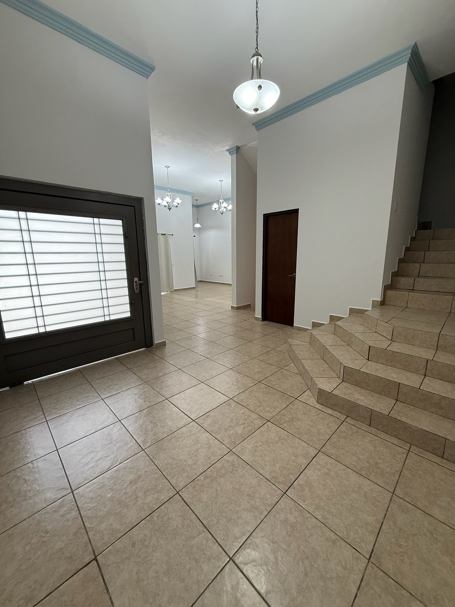 Segundo piso: 3 recámaras, la principal con baño completo y walk-in closet; las otras dos comparten baño y cuentan con roperías.