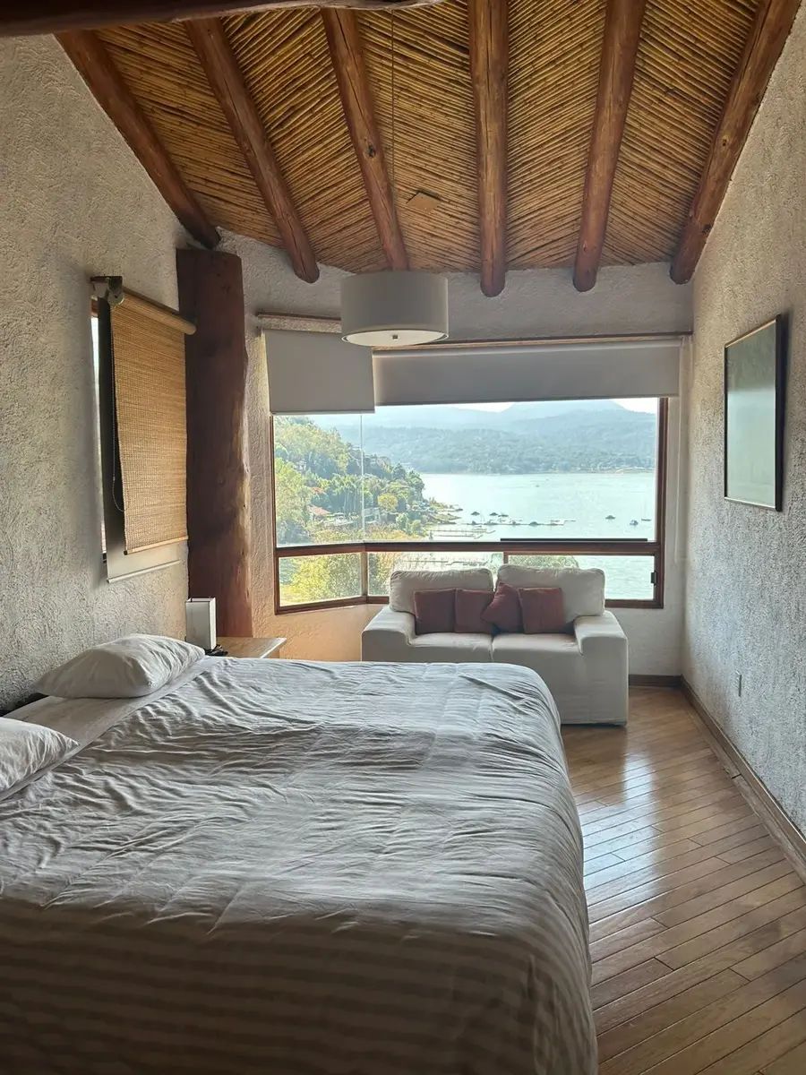 Cuenta con 3 recámaras, la principal con amplio closet, chimenea, pequeño estudio y vistas panorámicas, recamaras secundarias con vista, cada una con tapanco y baño completo.