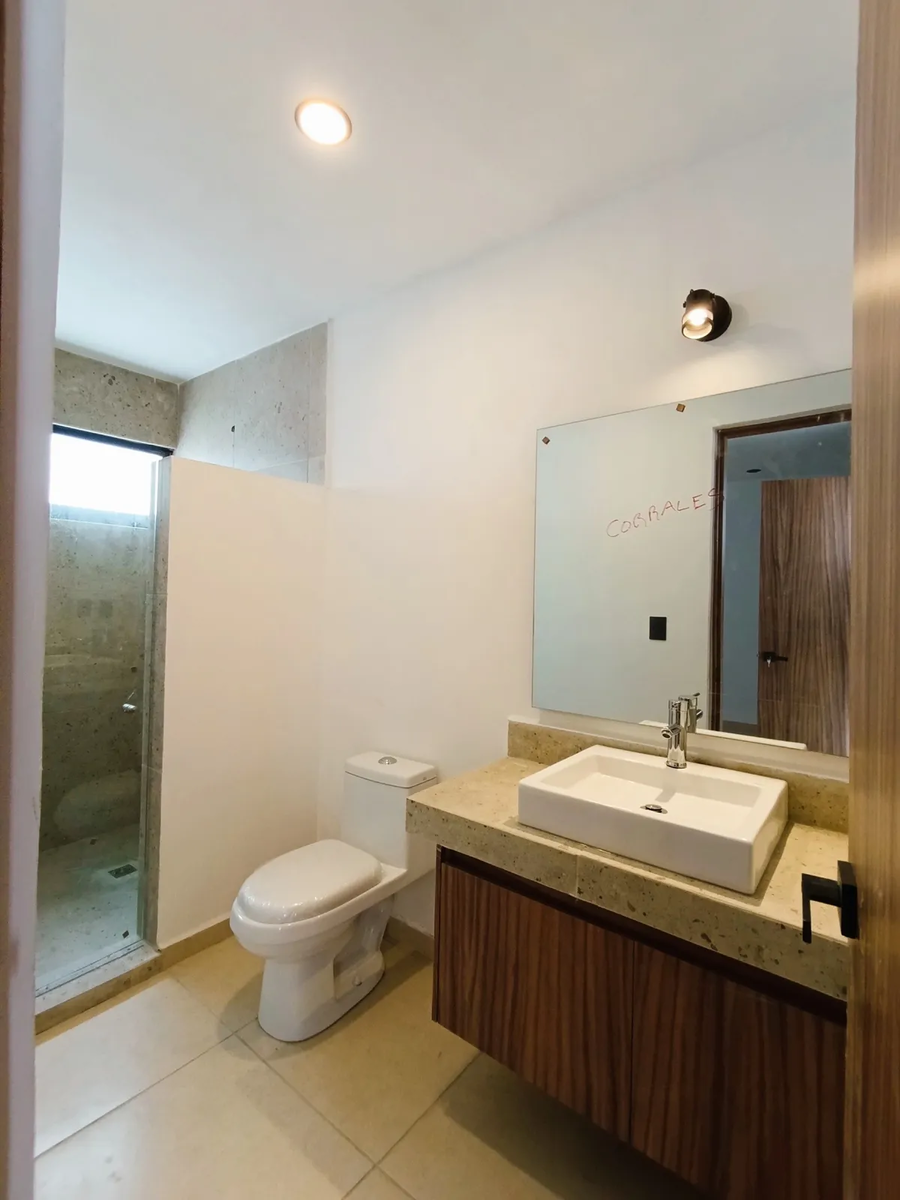 Recámara principal un baño completo, doble lavabo, walking closet , dos recámaras secundarias con closets y baño completo cada una.