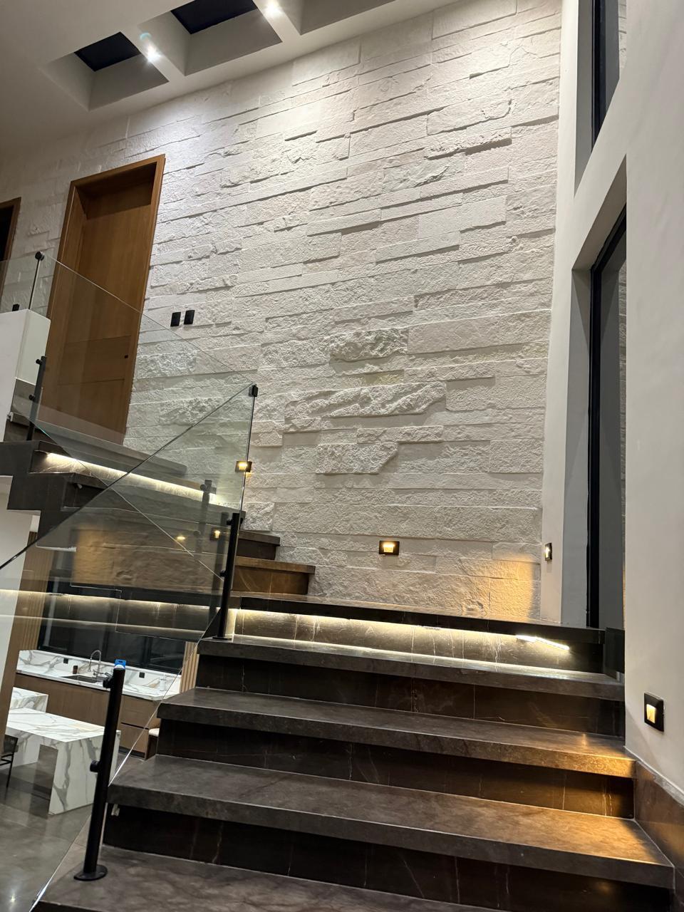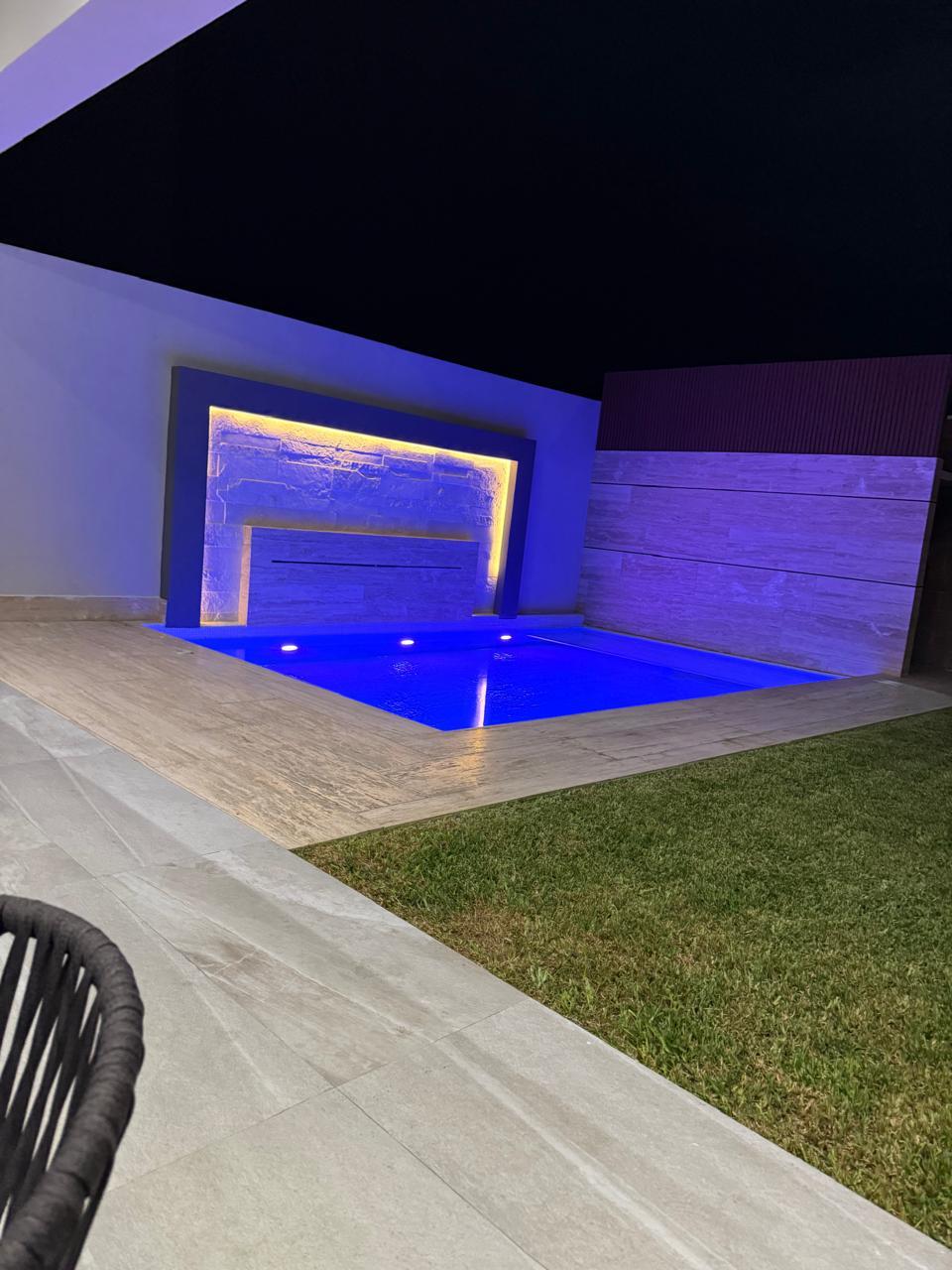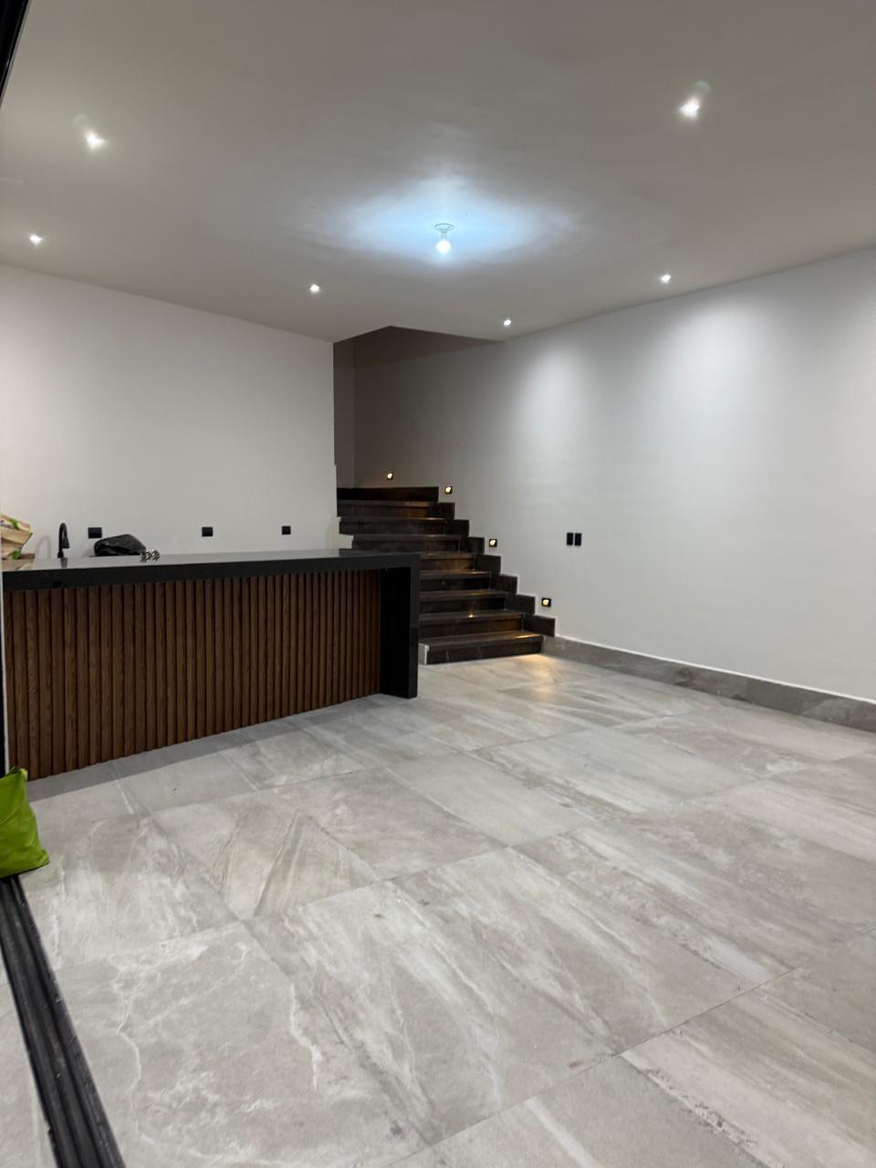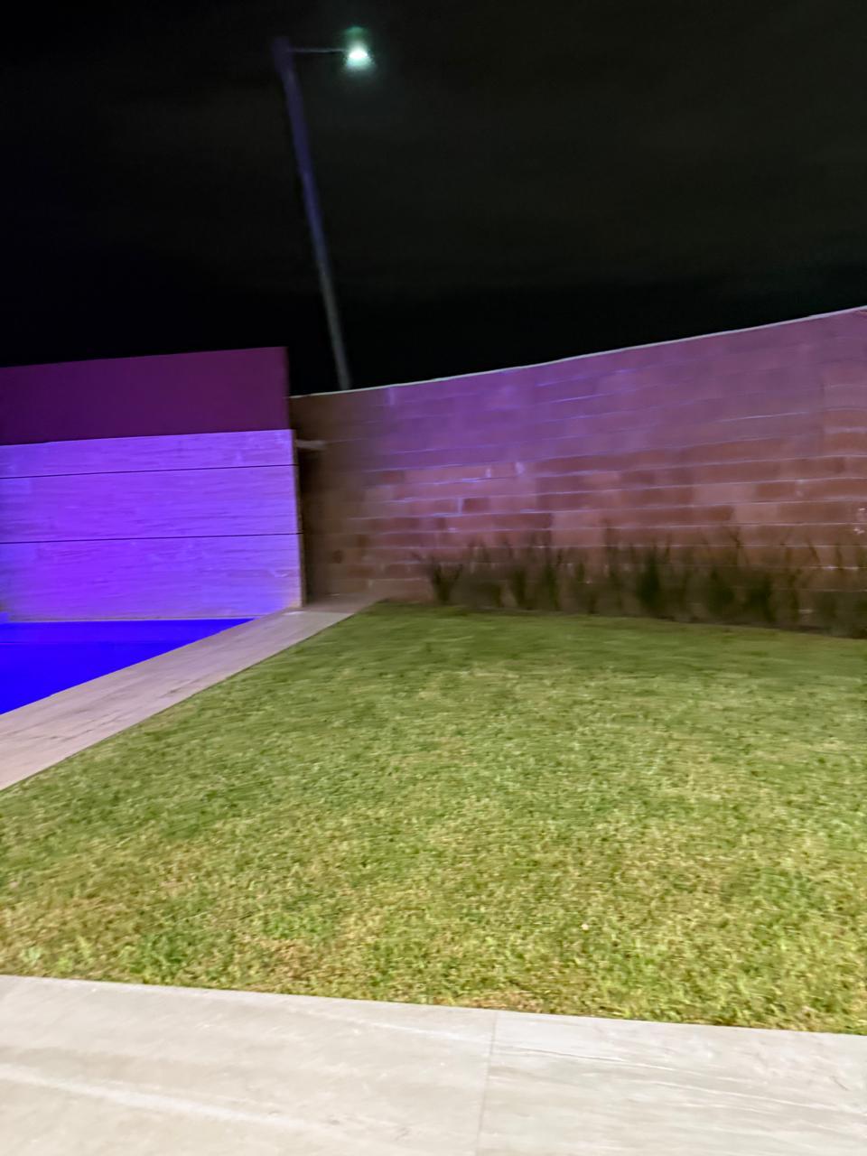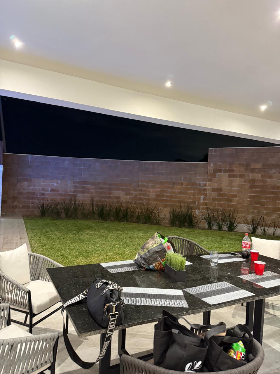 Sótano con cuarto para juego y patio con alberca iluminada y asador con mesa de Granito