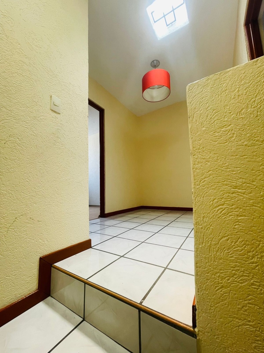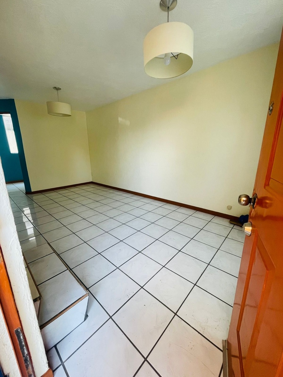 2 recámaras c/ closet, Sala de estar en la P.A, 1 1/2 baños, Estudio a opción a recámara en P.B, Sala, Comedor, Cocina c/ estufa y campana, Área de servicio con protección, Cochera, Protecciones