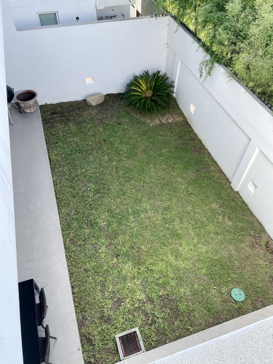 Jardín con terraza techada