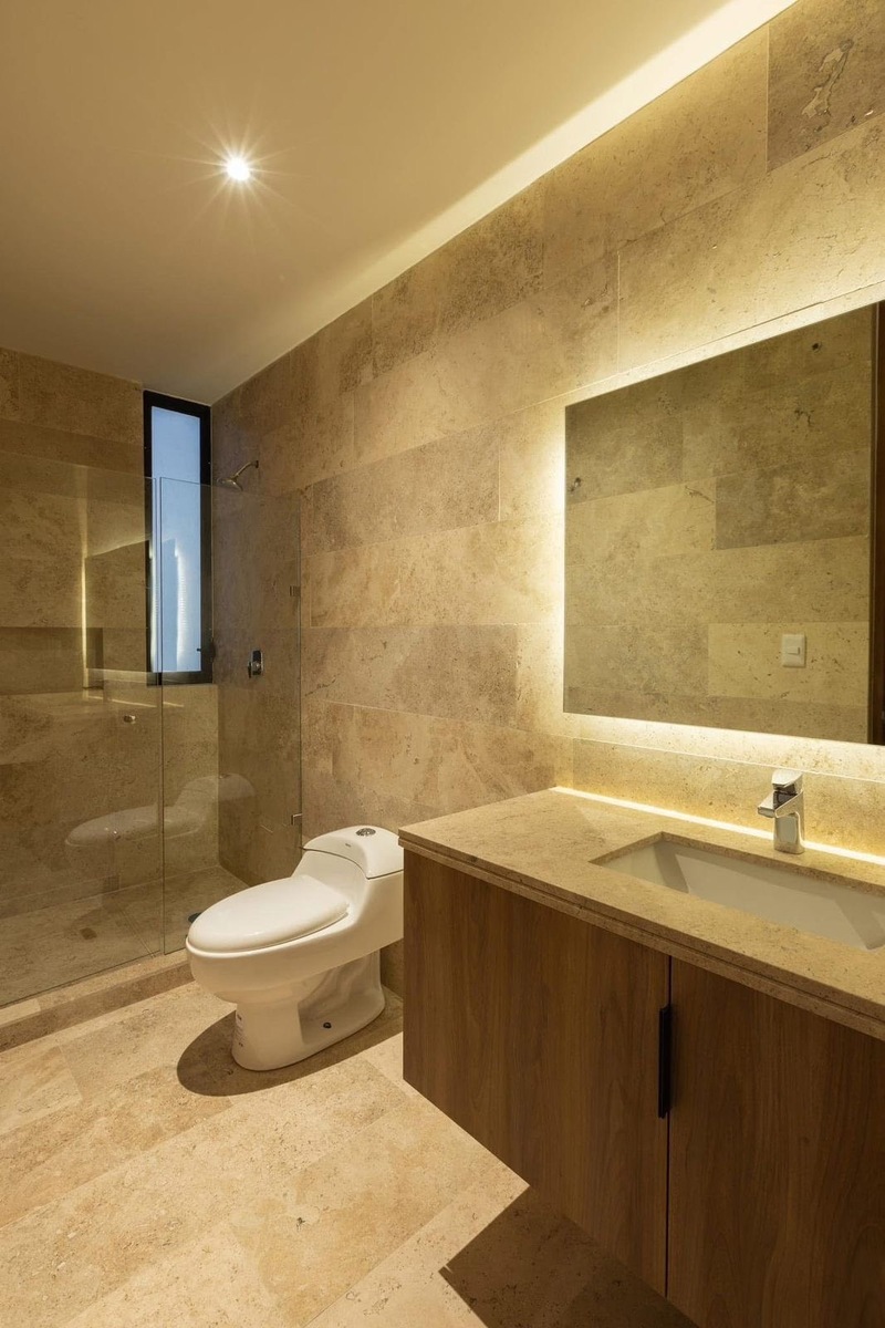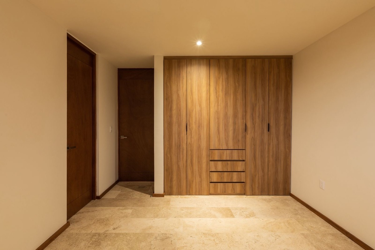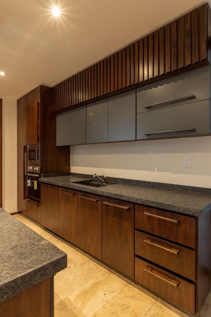 • Integral kitchen made of tzalam wood with granite countertop, built-in oven, microwave, grill, and hood.