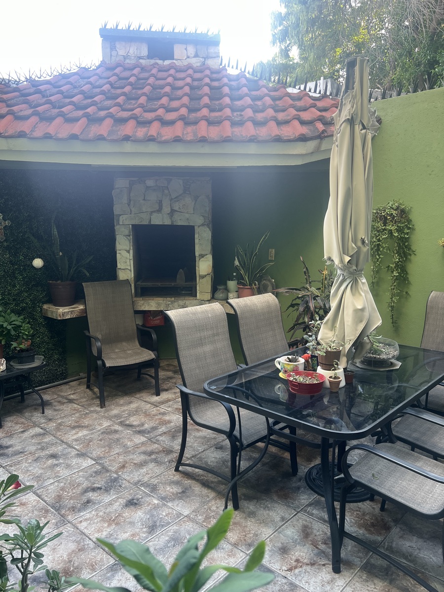 Located half a block from a park and daycare.Casa acogedora con todo lo necesario para una familia en zona privilegiada con crecimiento de plusvalia. Cuenta con tres recamaras y un cuarto flex, estancia, area social exterior con asador, cuarto de servicio. Porton electrico, sistema de seguridad, paneles solares y camaras de circuito cerrado.