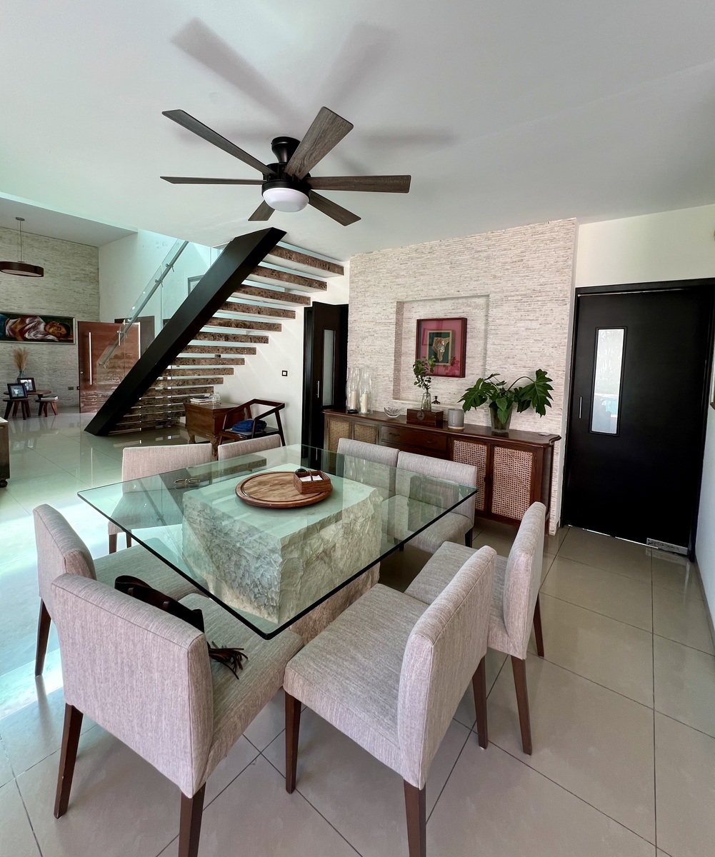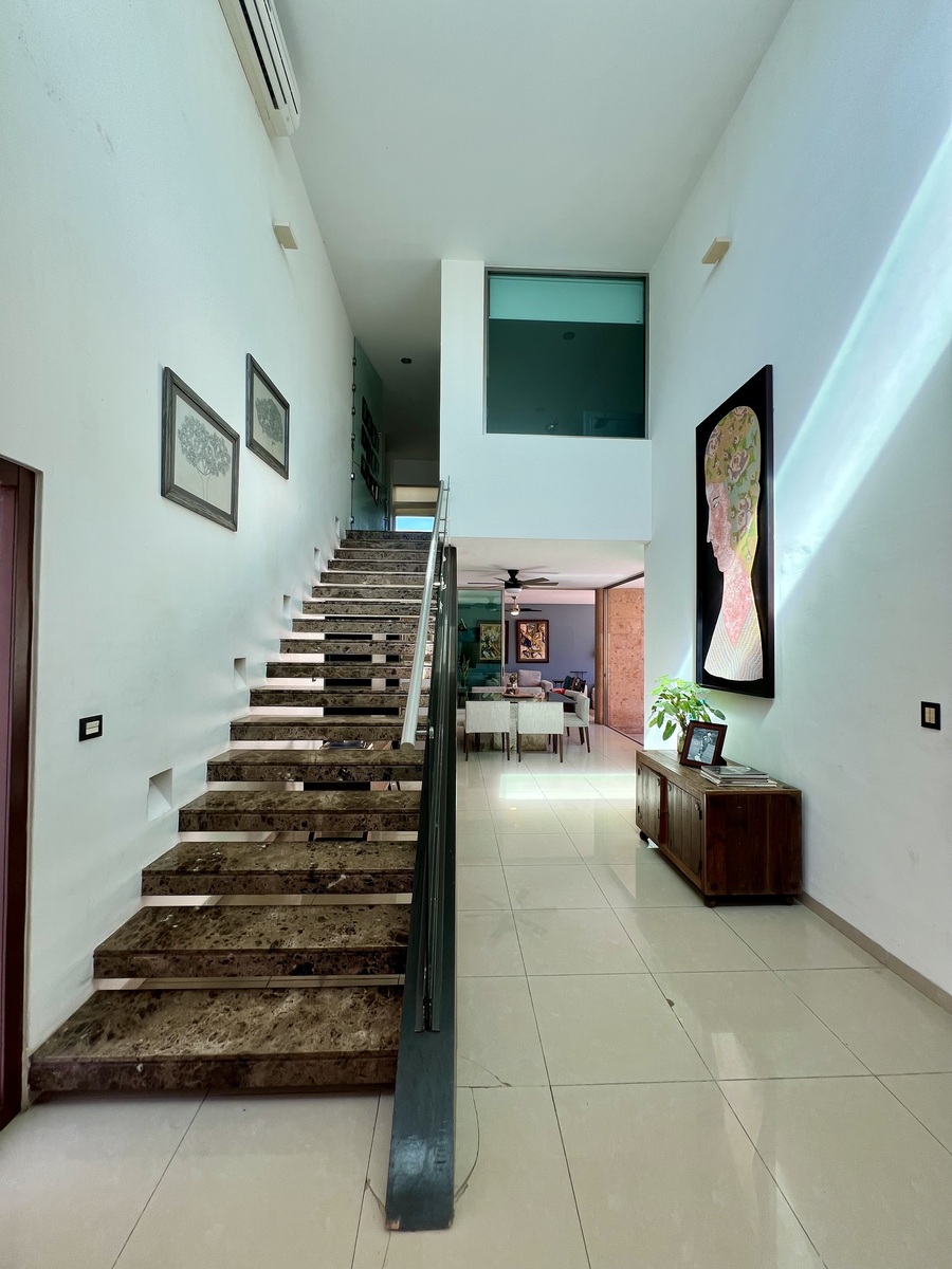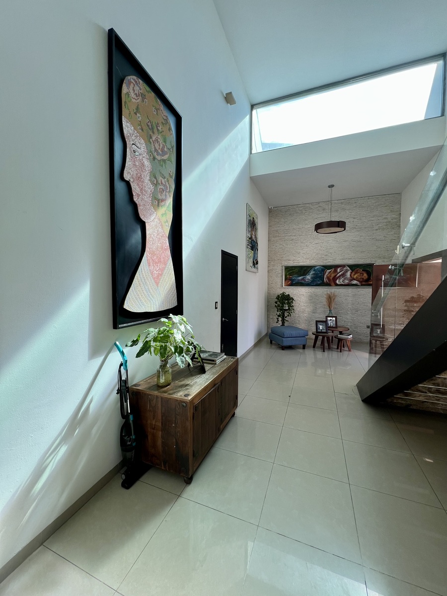 Cuenta con mucha iluminación y ventilación, techos altos, ventanales, cocina equipada con amplia despensa, área de TV o juego en PB más un área de bar en el exterior con vista a la hermosa piscina.