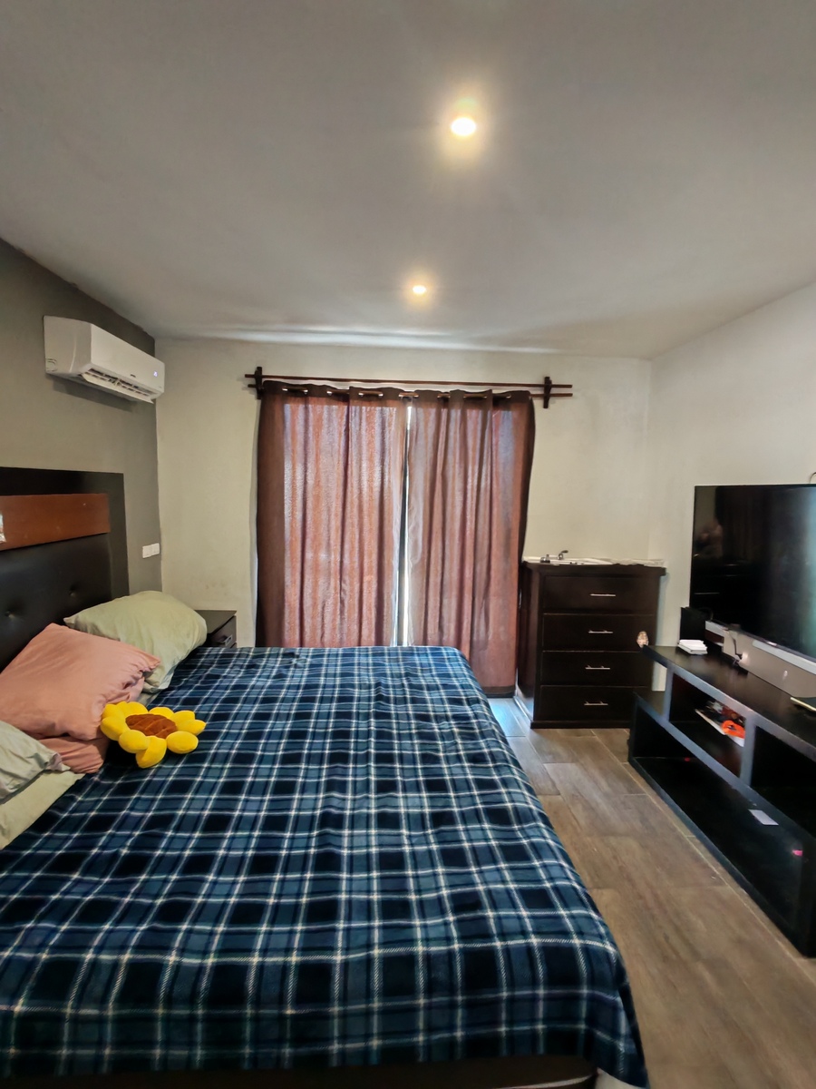 Puerta de seguridad • Mueble empotrado para TV • Persianas en planta baja • 4 climas • 3 abanicos de techo • Mueble en lavandería • Boiler de paso • Tinaco • Clóset