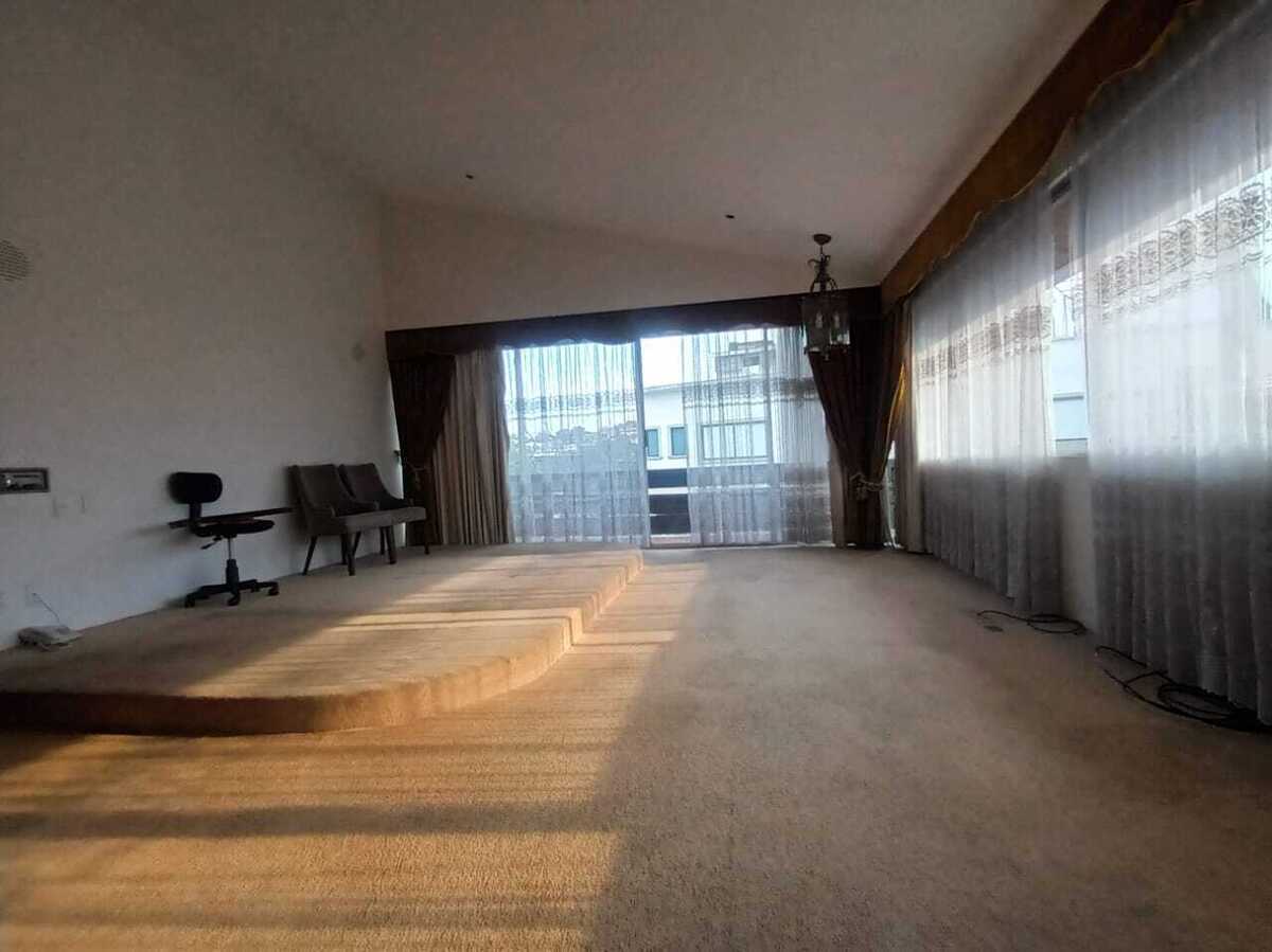 Large family room or office, double-height ceilings.
