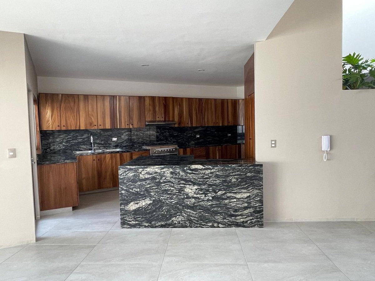 Sala, comedor, cocina de granito y parota amplísima con alacena.