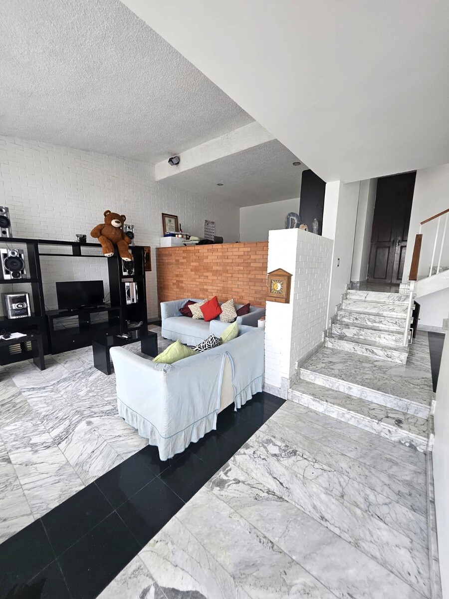 Jardín frontal chico y terraza, Diseño estilo moderno contemporáneo. Pisos de Mármol, Hall, Sala, Comedor separados, baño de visitas (acabados en granito), Cuarto de servicio con baño completo (acceso independiente), estudio, Escalera, Cocina con cubiertas de Granito y placa en muro, Patio de Lavado.