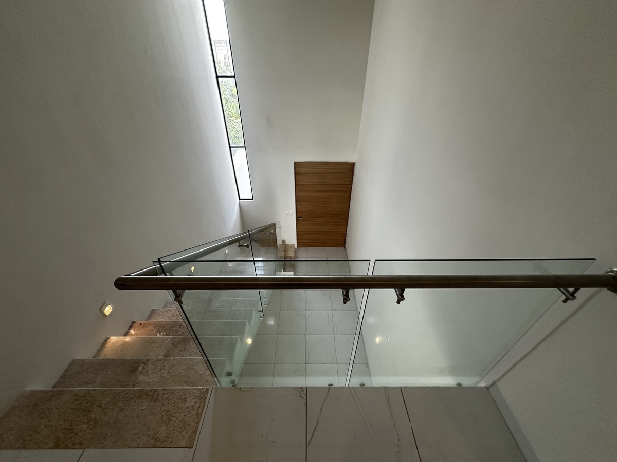 • Cancelería con aluminio y cristal transparente de 6mm.