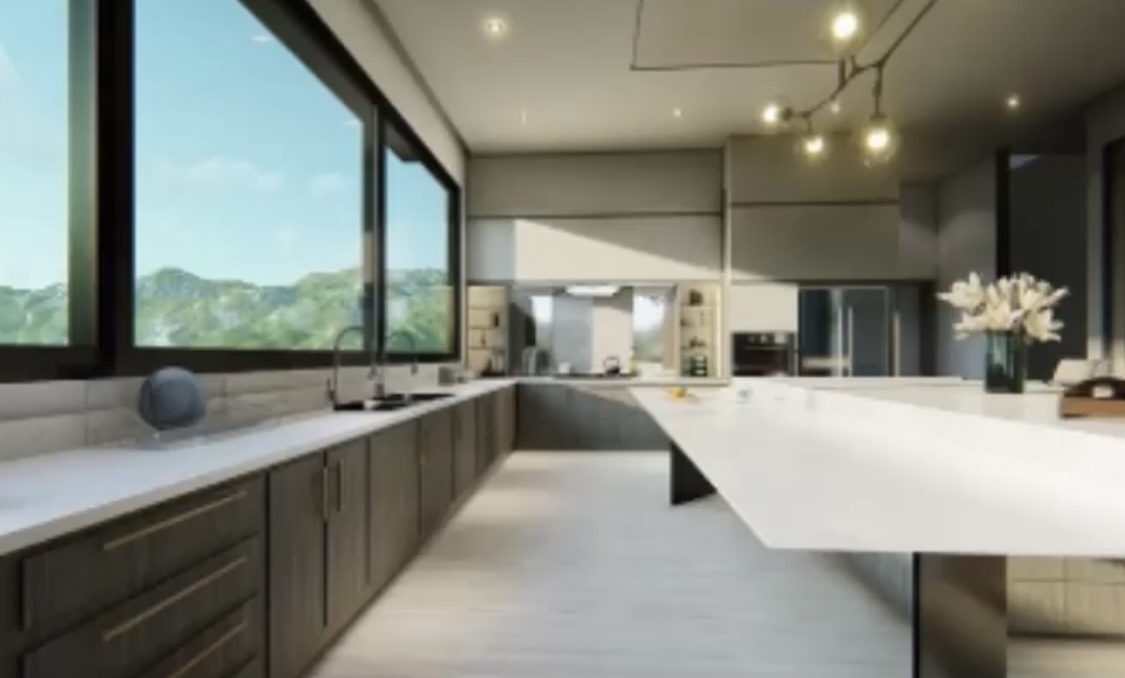 La casa está pensada y construida con acabados naturales y modernos. Pisos de mármol en placa y duela, cancelaría, carpintería en nogal, un área de convivencia con alberca y asador con equipamiento, caseta de vigilancia, clima central, sistema inteligente, sistema de riego.