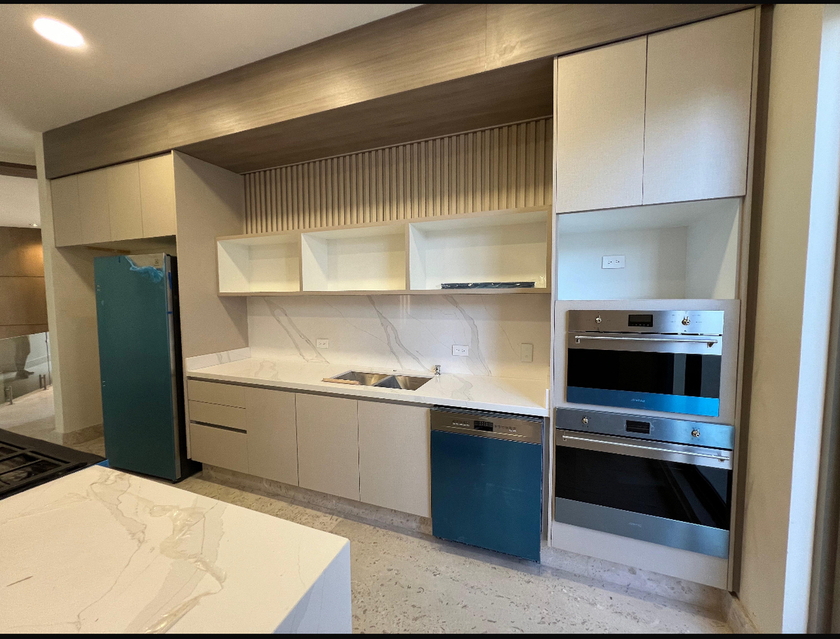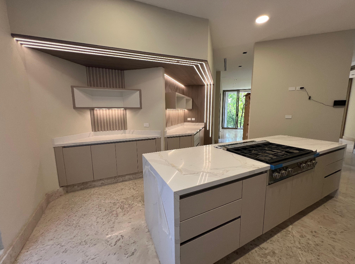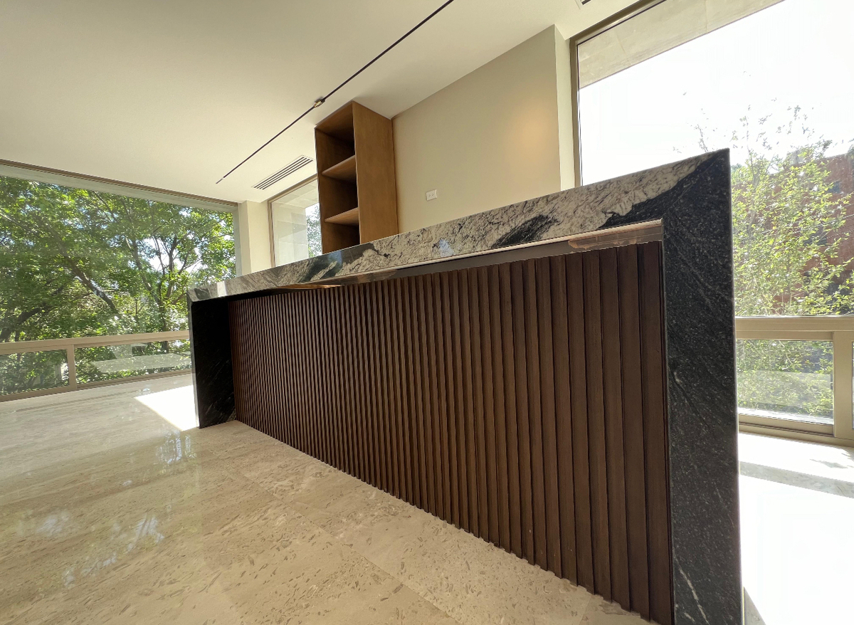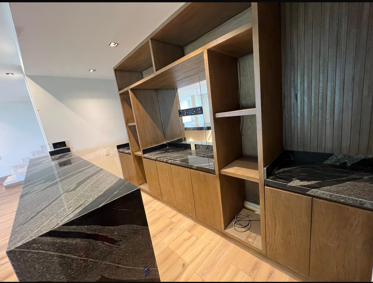 El área social es amplia e incluye un recibidor, sala, comedor y un área de bar. La cocina está completamente equipada y cuenta con un espacio de antecomedor con balcón. La cochera tiene capacidad para 3 autos, y toda la casa presenta finos acabados que realzan su elegancia.
