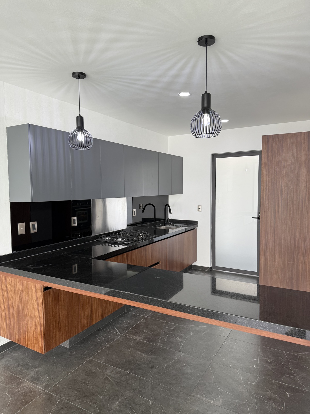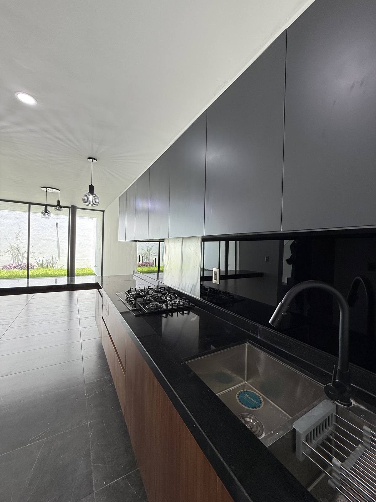 * Plata baja: estudio, sala, comedor, cocina integral (con barra), patio de servicio, terraza con jardín y medio baño.