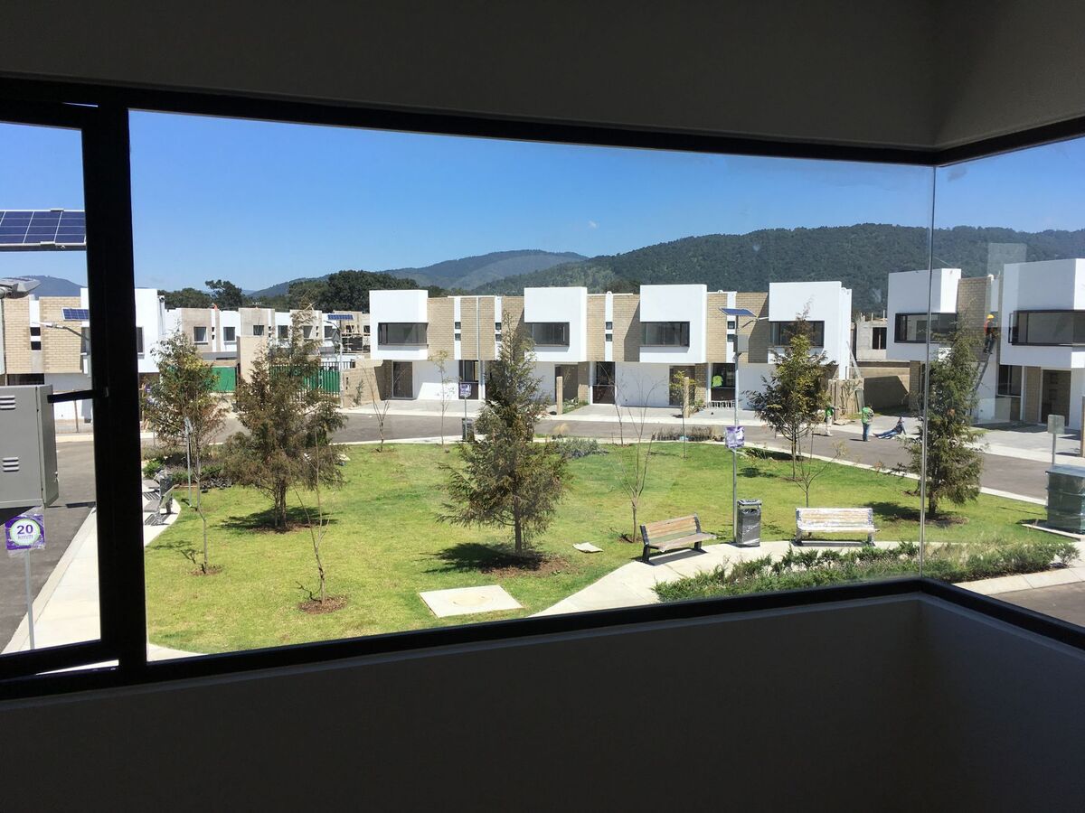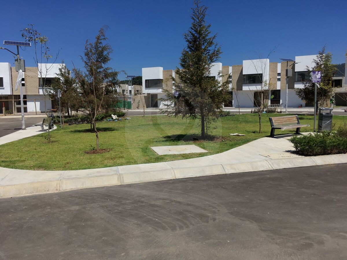 a menos de 20 minutos de Santa Fe, jutno al colegio Miraflores, Esta moderna casa tiene una ubicación privilegiada dentro de la privada, ya que la fachada de frente da a un parque y por atrás colinda con la cancha de fútbol soccer de pasto natural del Colegio Miraflores.