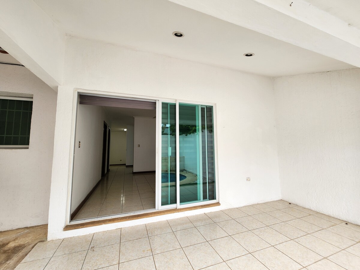 La casa cuenta con cisterna, tinaco, 3 ventiladores de techo y 3 equipos de A/A