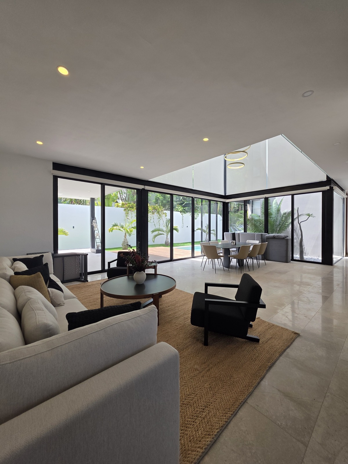 ▪ Aluminum frames series 150 with 6mm glass, tempered 10mm on stairs, gardens, and bathrooms