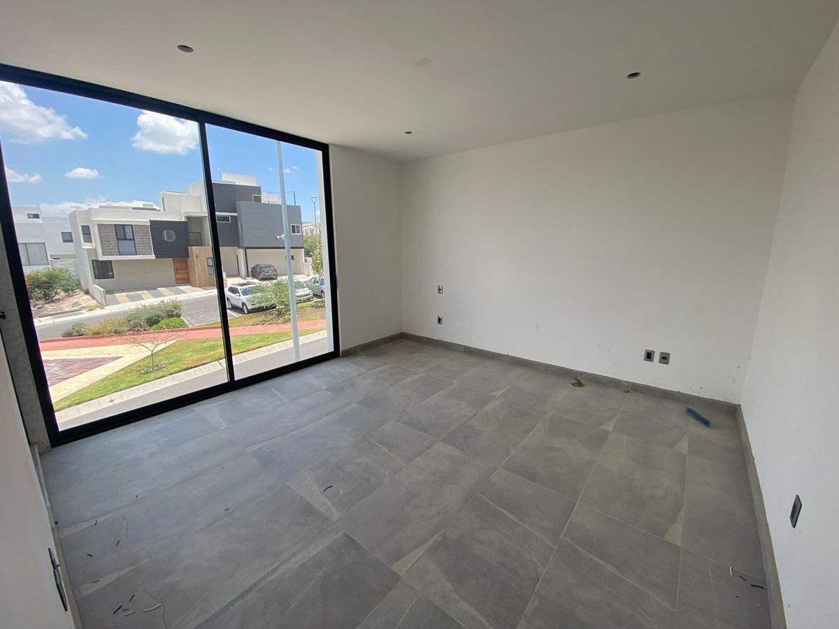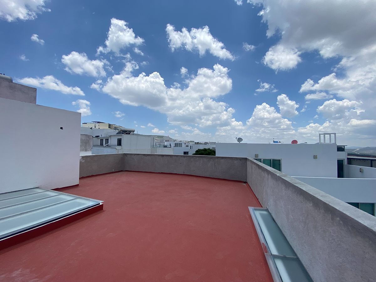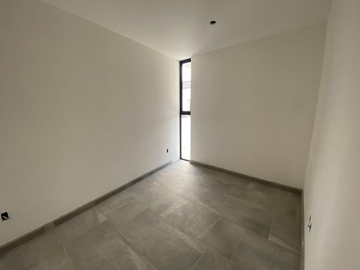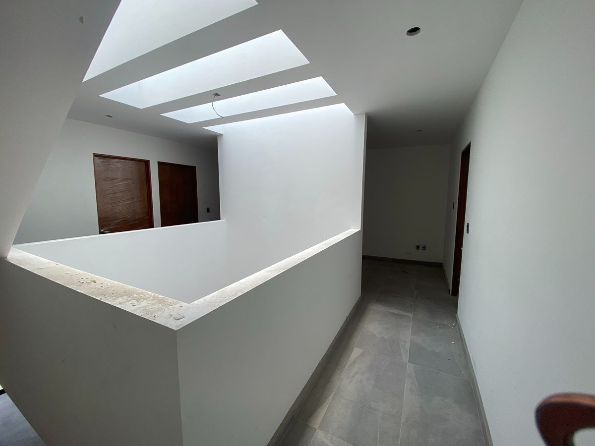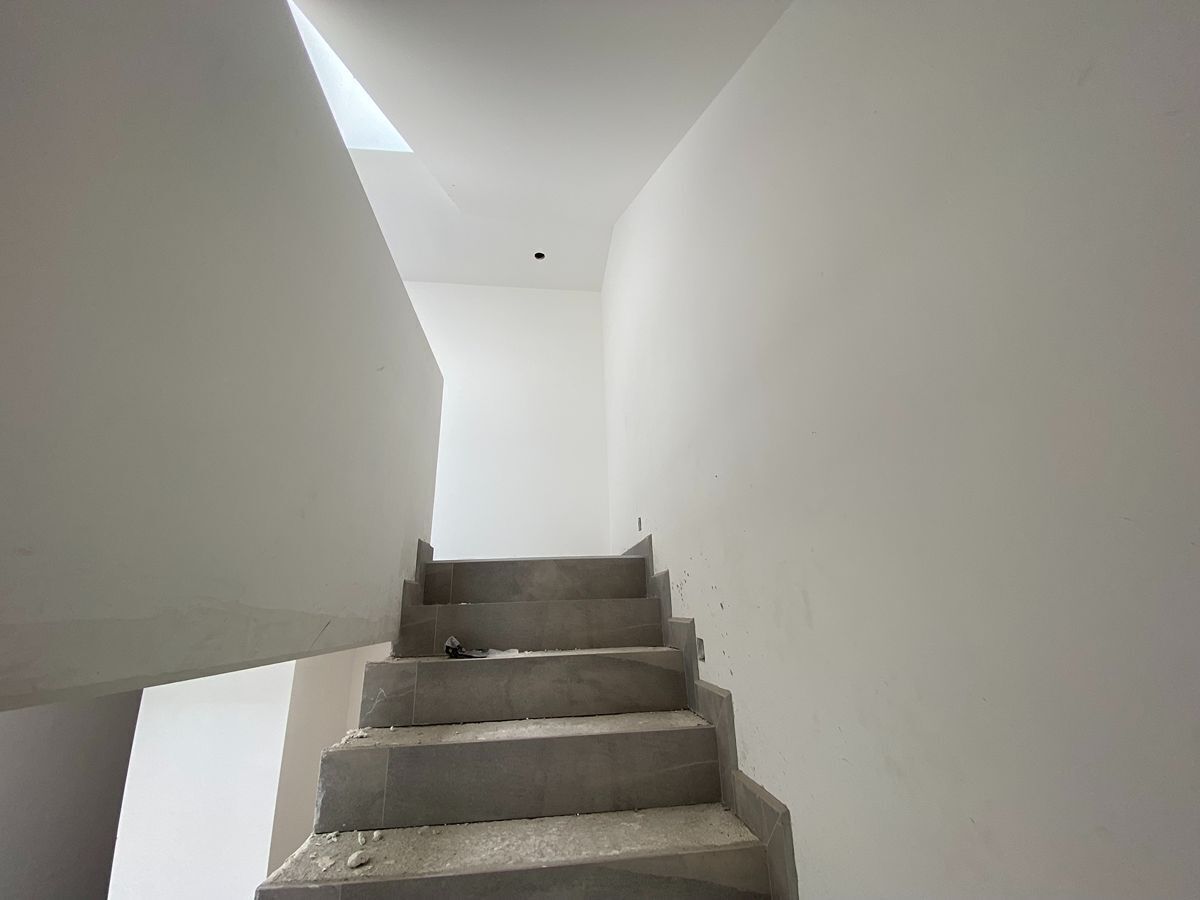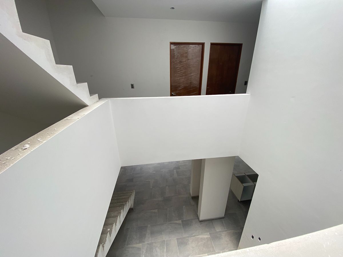 Cochera semi techada para dos autos, medio baño, estudio, recibidor a doble altura, estancia sala-comedor, cocina integral con cuarto de lavado y jardín.
