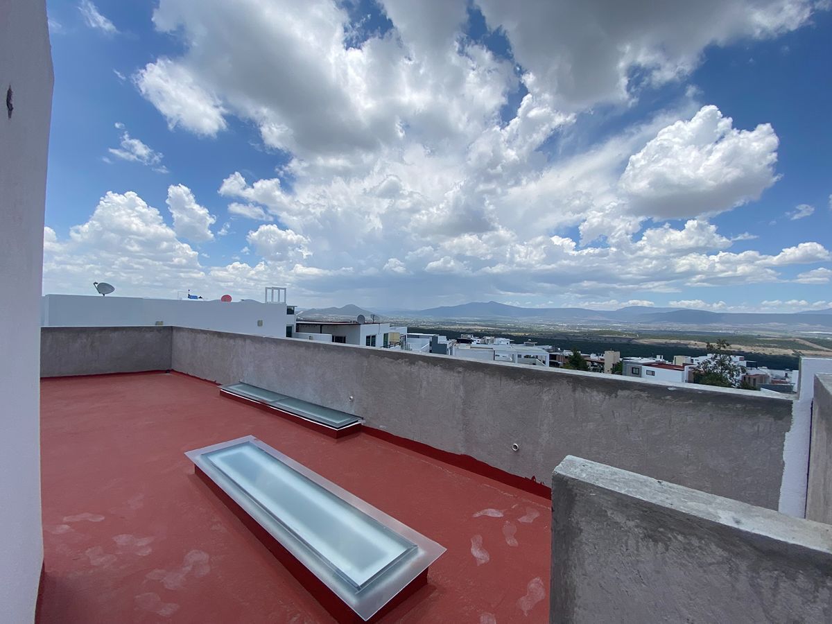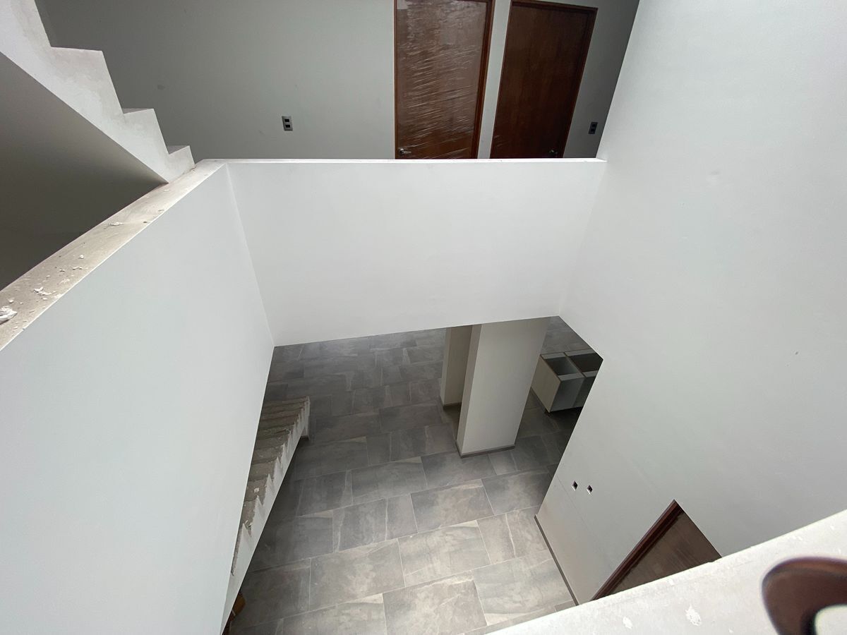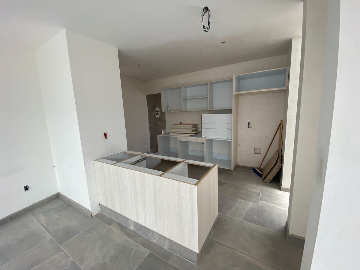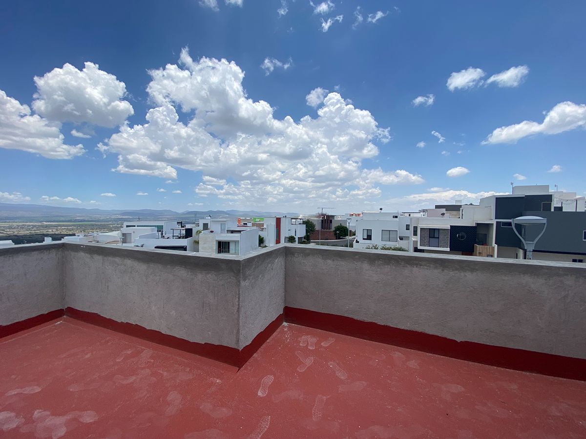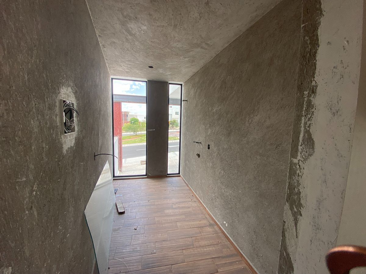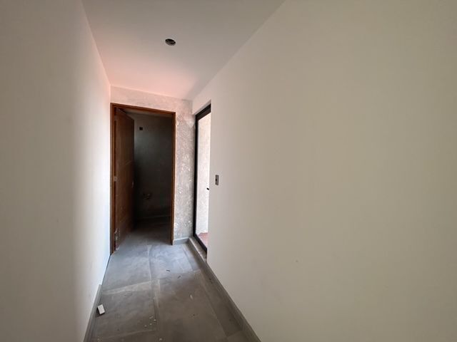Cochera semi techada para dos autos, medio baño, estudio, recibidor a doble altura, estancia sala-comedor, cocina integral con cuarto de lavado y jardín.