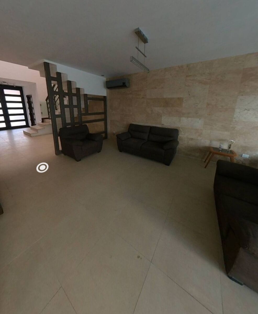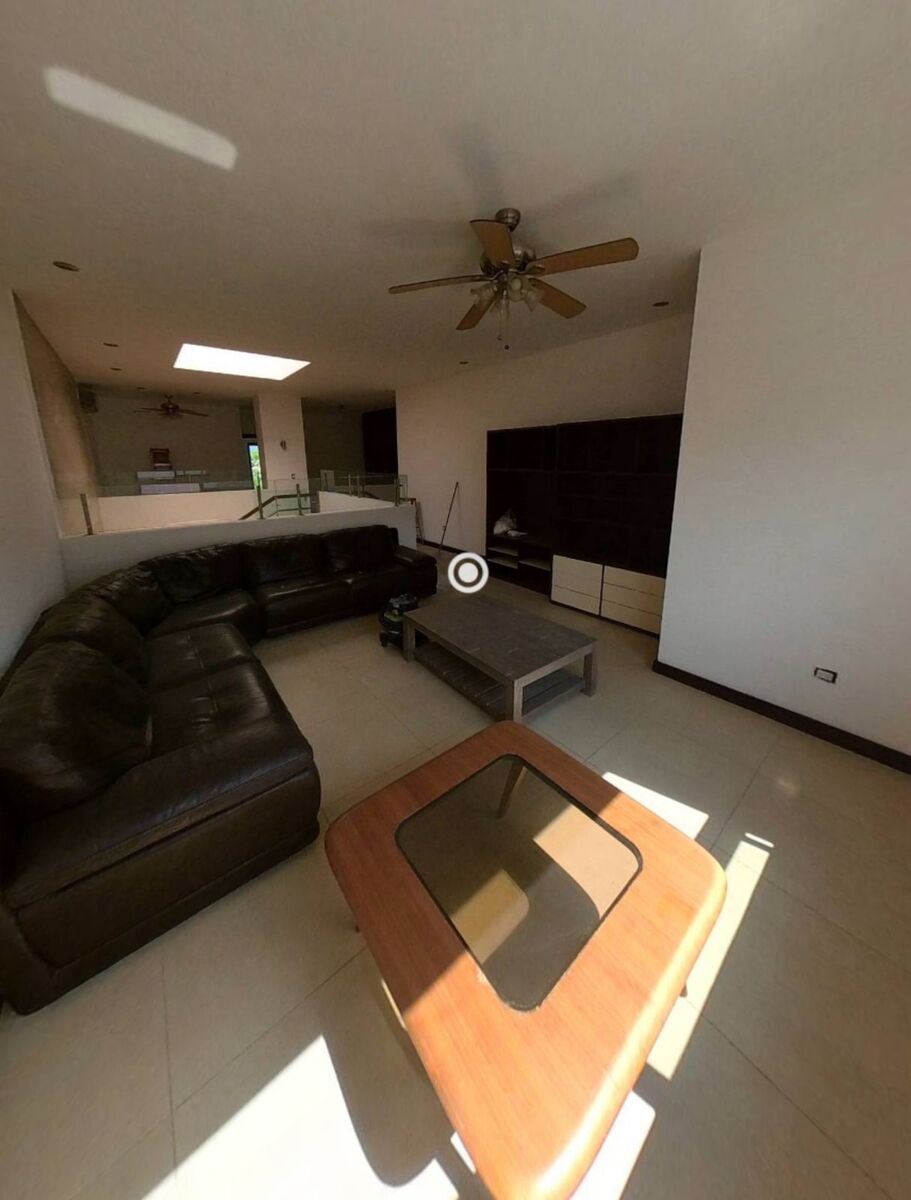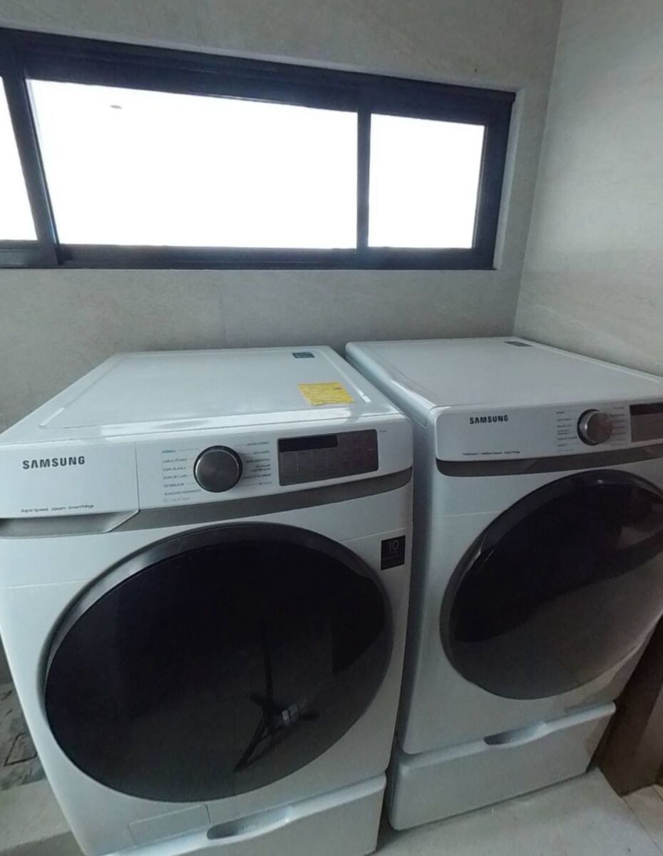 Cochera triple, sala, comedor, cocina, antecomedor y lavandería equipada.