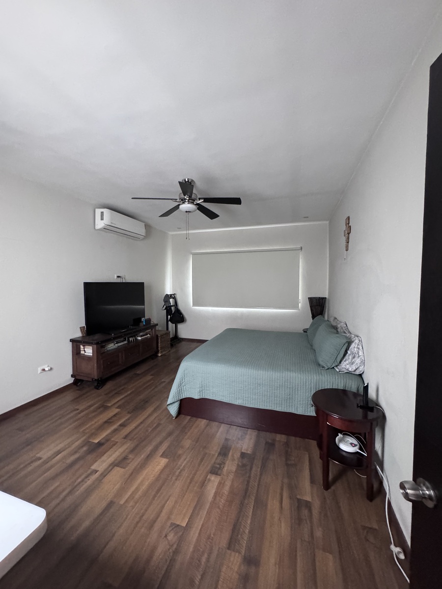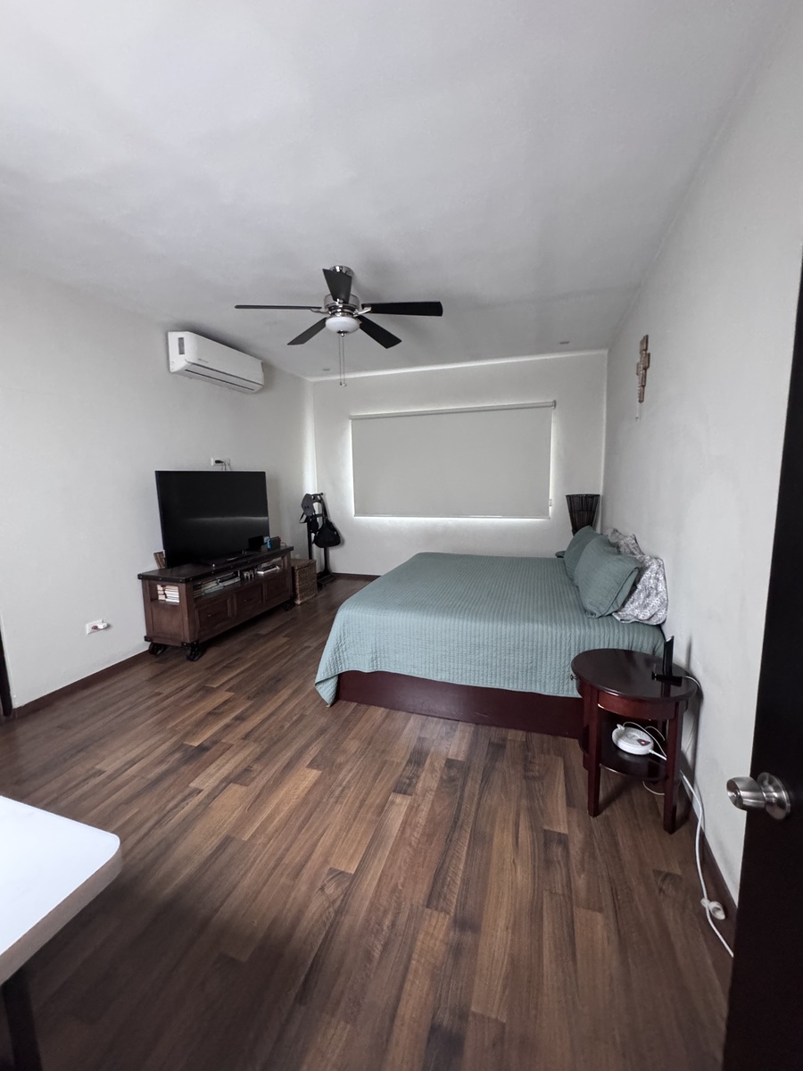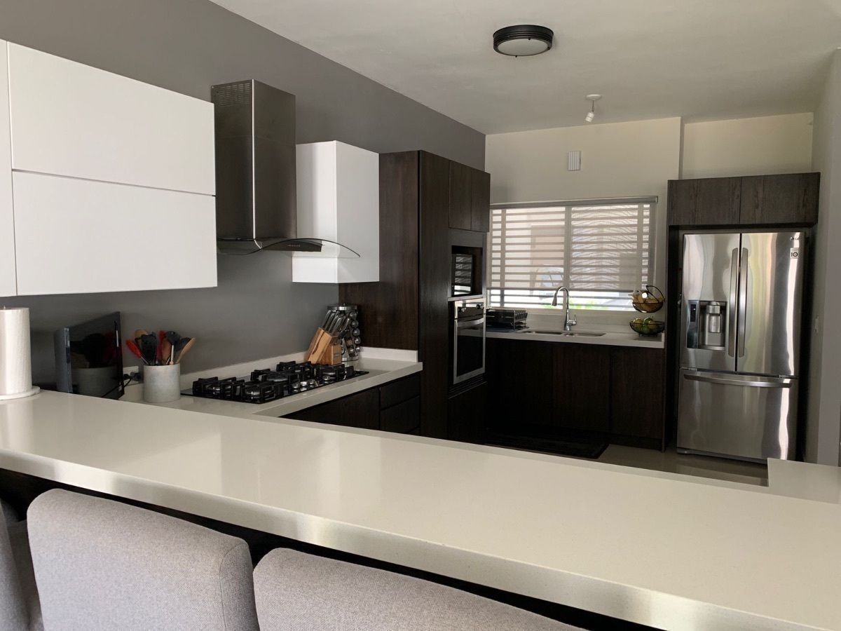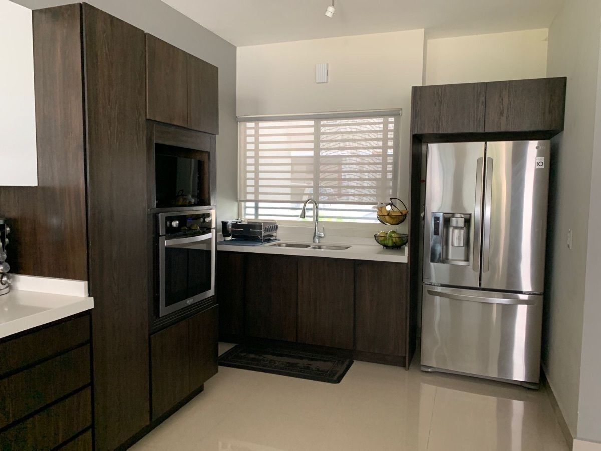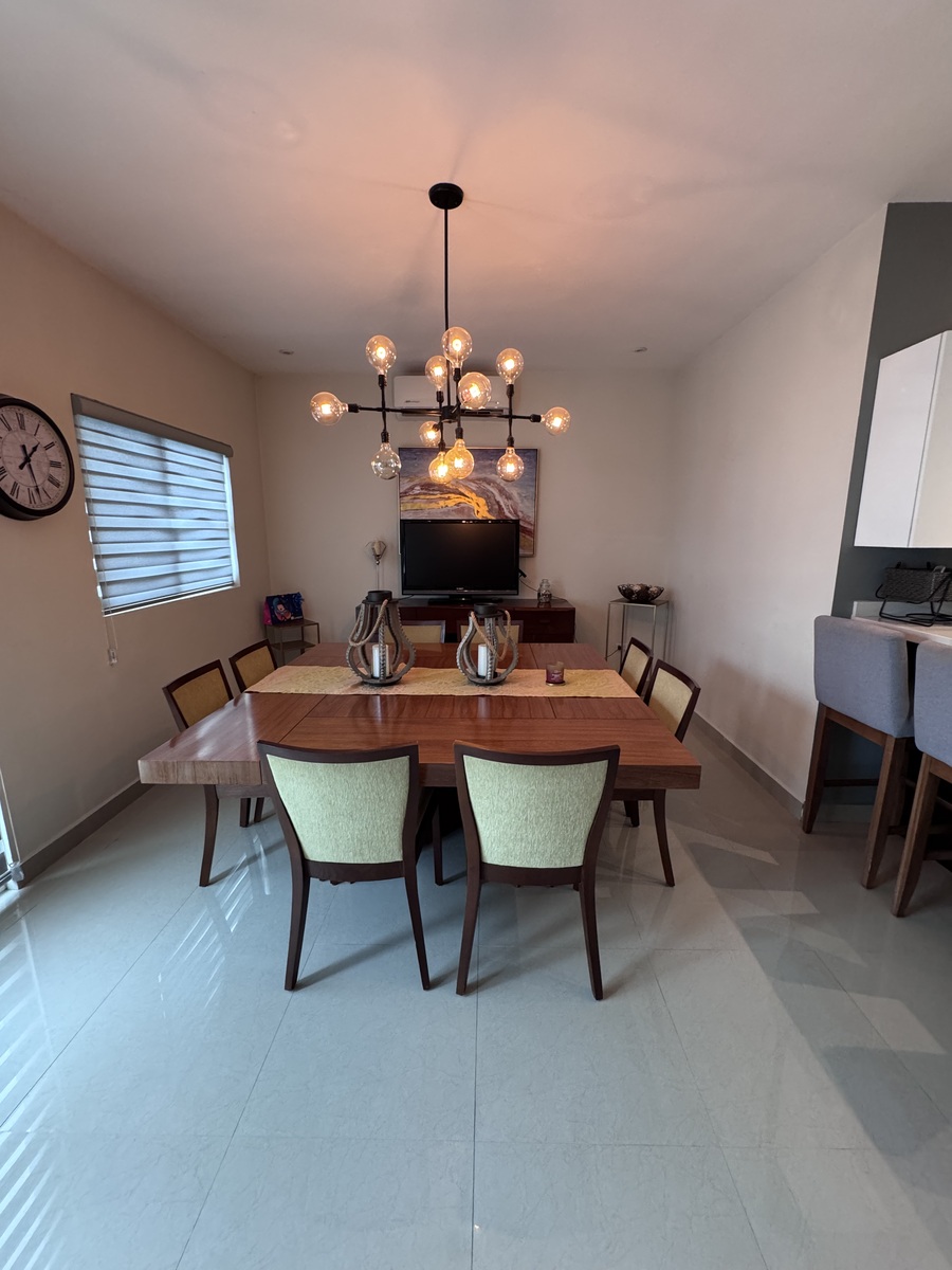 Stage 1 has 250 MT of land and 269 MT of construction. It has a covered garage for 2 cars. Living room, dining room, and fully equipped kitchen with 2 mini-splits on the ground floor, guest bathroom, and service room with laundry. Includes chandeliers and a 70-meter patio with a large garden. On the second floor, there are 3 bedrooms with bathroom - dressing room. Spacious family room and 5 mini-splits and ceiling fans. Balcony in secondary bedrooms and balcony at the front. Private neighborhood with 24/7 security. Clubhouse with pool and playground.