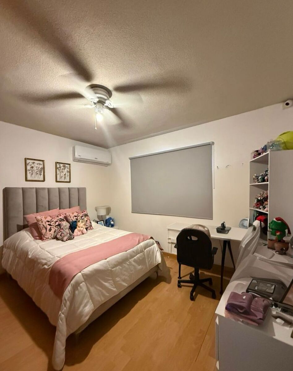Segunda planta: Distribuidor con baño completo que lo comparten las dos recámaras secundarias, cada una con clóset de pared. La recámara principal cuenta con una sala de TV, vestidor y baño completo.