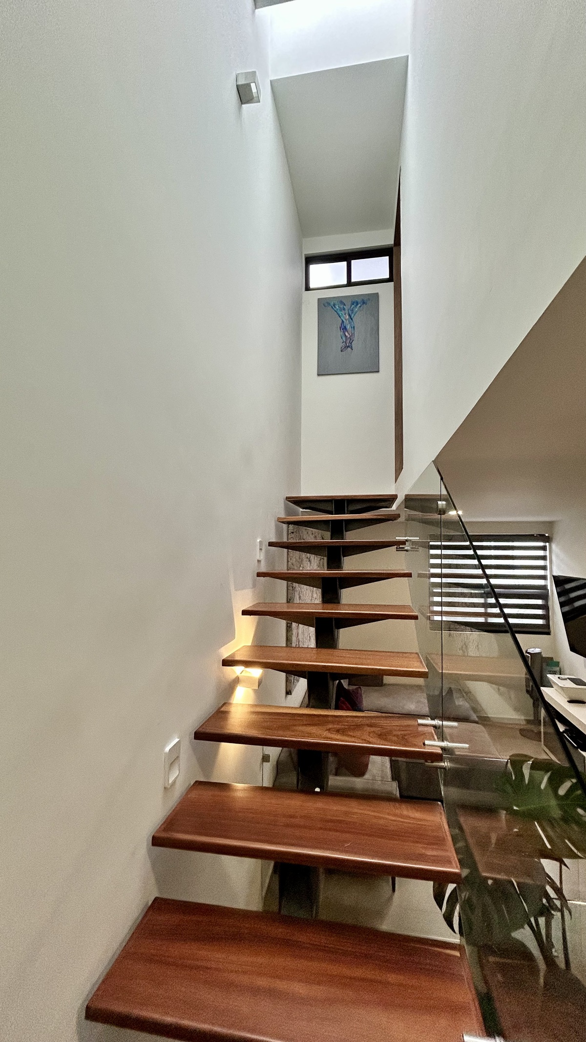 Segundo nivel: 2 recámaras con vestidor y baño completo, más una sala de estar.