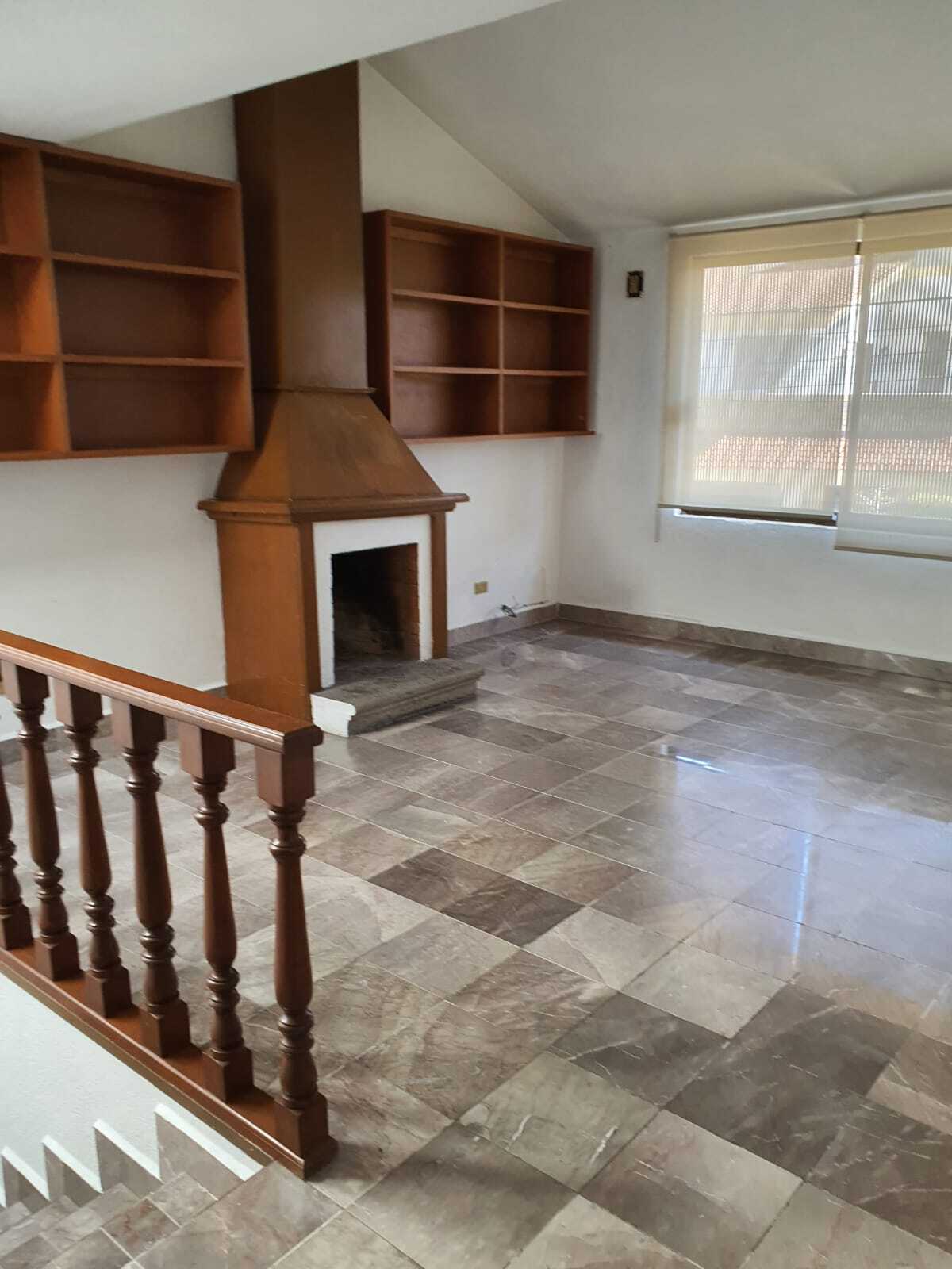 En el primer nivel sala de tv con chimenea, recamara principal con baño completo, dos recamaras secundarias con closet y baño completo.