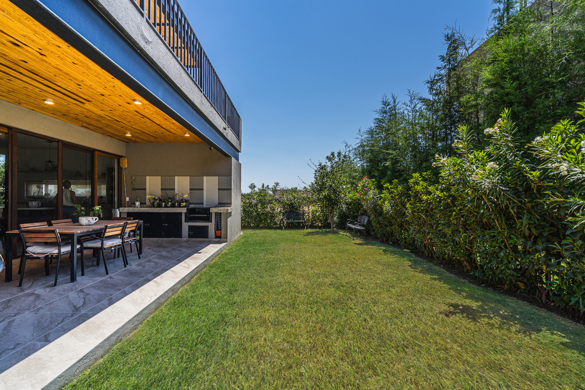 La cocina, estratégicamente abierta y equipada con los mejores electrodomésticos, se integra armoniosamente con el espacio, creando un ambiente acogedor y funcional. Desde aquí, se puede acceder a un área exterior simplemente espectacular, con una terraza cubierta que invita a disfrutar de reuniones al aire libre, una piscina y un entorno rodeado de exuberante jardín.