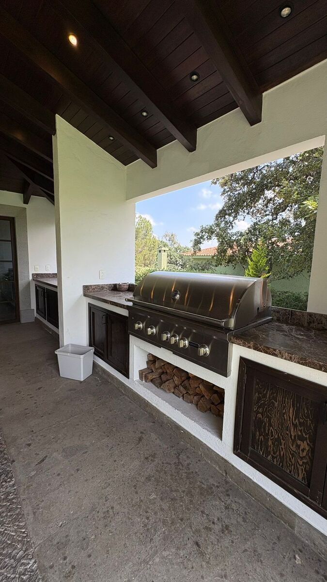 La cocina es el corazón de la casa, con una estufa estilo profesional y amplios espacios de preparación. El diseño es moderno y a la vez sobrio, funcional perfecto para cocinar en grandes grupos.