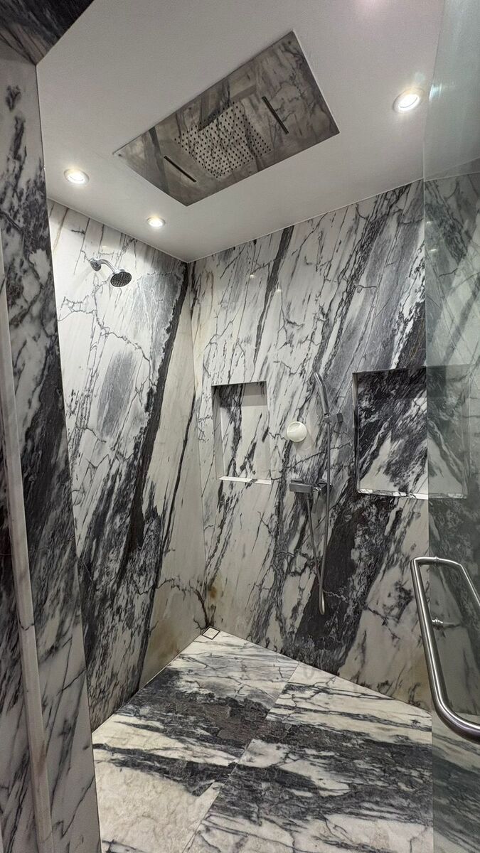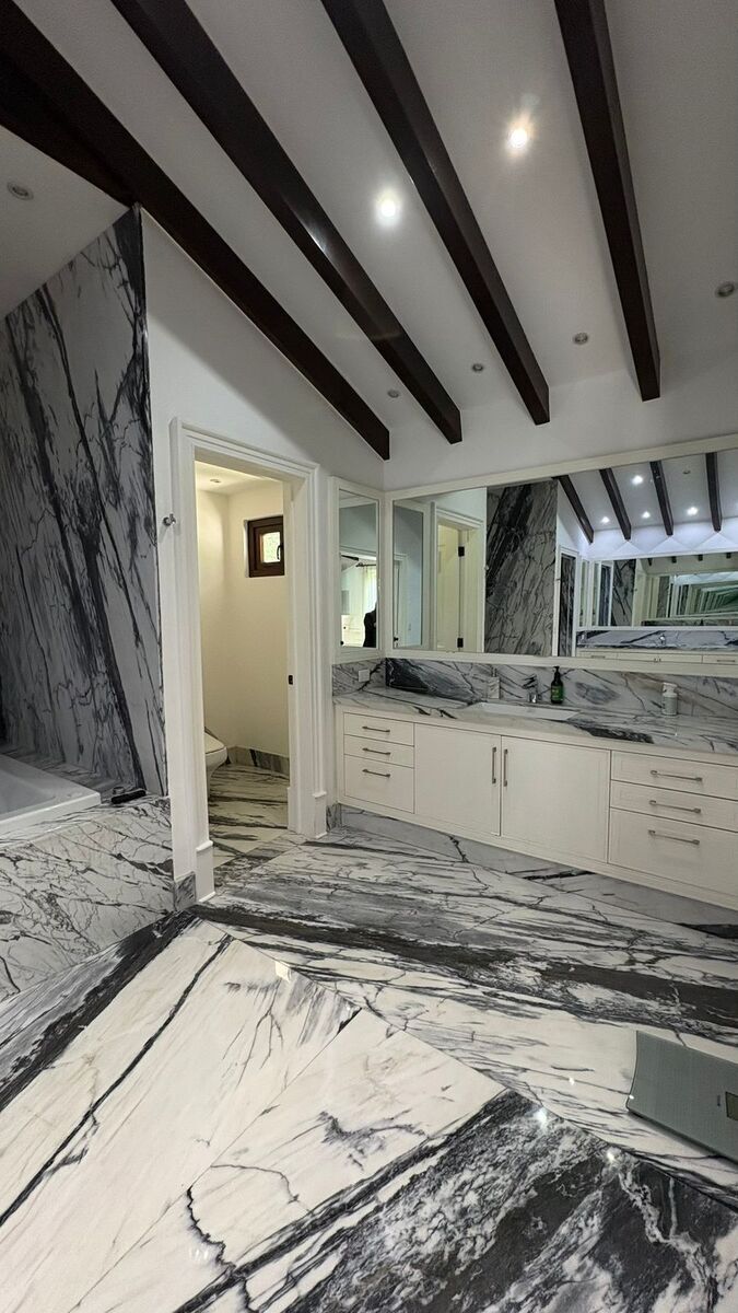 The house features three bedrooms, each with a large walk-in closet and spacious bathroom; the master bedroom is a true sanctuary, with floor-to-ceiling marble bathrooms as well as the walk-in closet, perfect for meeting the needs of every family member.