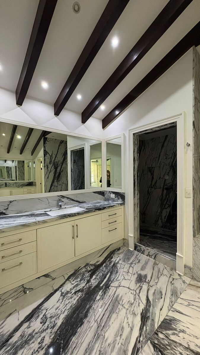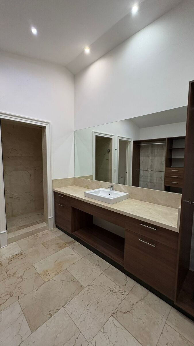 La casa cuenta con tres recamaras, cada una con vestidor grande y baño amplio, la recamara principal es un verdadero santuario, con baños de mármol de piso a techo así como el vestidor, perfectos para satisfacer las necesidades de cada miembro de la familia.
