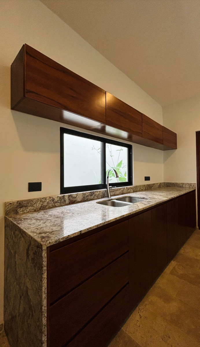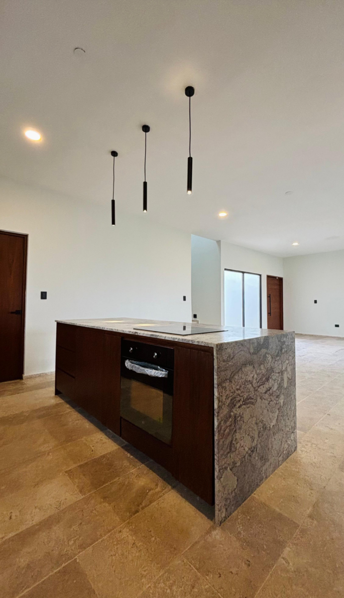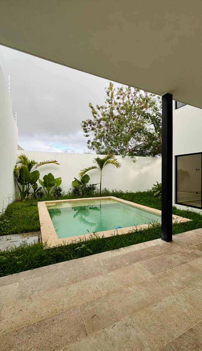 Located just 4km from the ring road. This beautiful house has everything you need: pool, equipped kitchen, study, and a complete layout. Located in a quiet area with easy access.Moderna casa en venta con 1 recámara en planta baja y 3 en