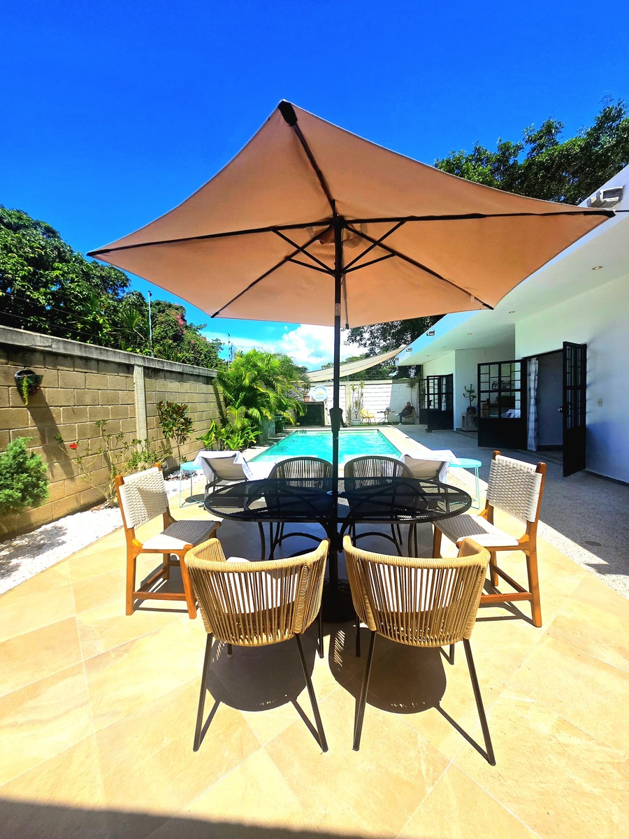 Villa privada con alberca, muy privada y a la vez cerca del corredor gastronómico de Nuevo Vallarta. 3 habitaciones con un toque moderno, minimalista y relajado, pero son sacrificar comodidad. Cuenta con páneles solares, baños y vestidores, dos habitaciones en planta baja, sala de doble altura. Ideal para rentas y venir con la familia y amigos. Pet friendly!