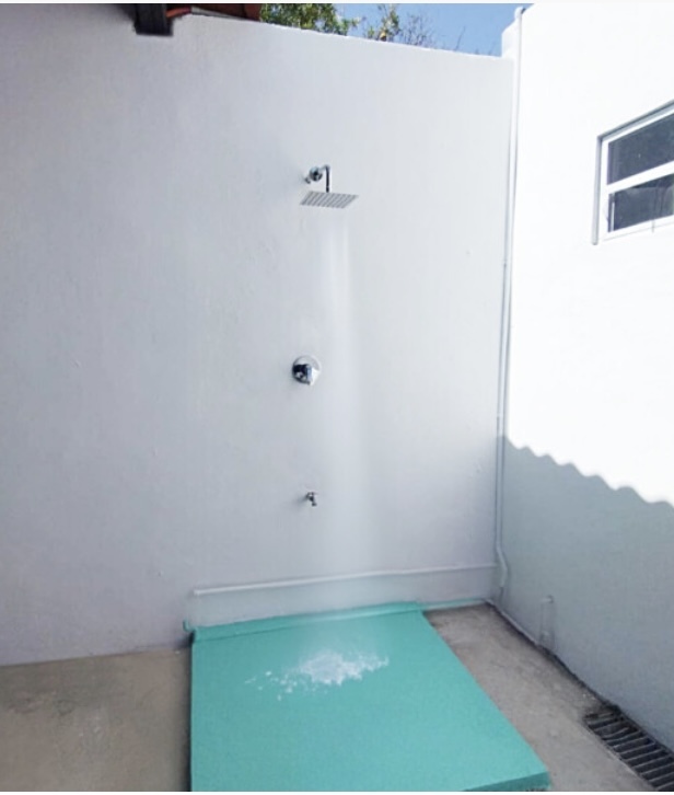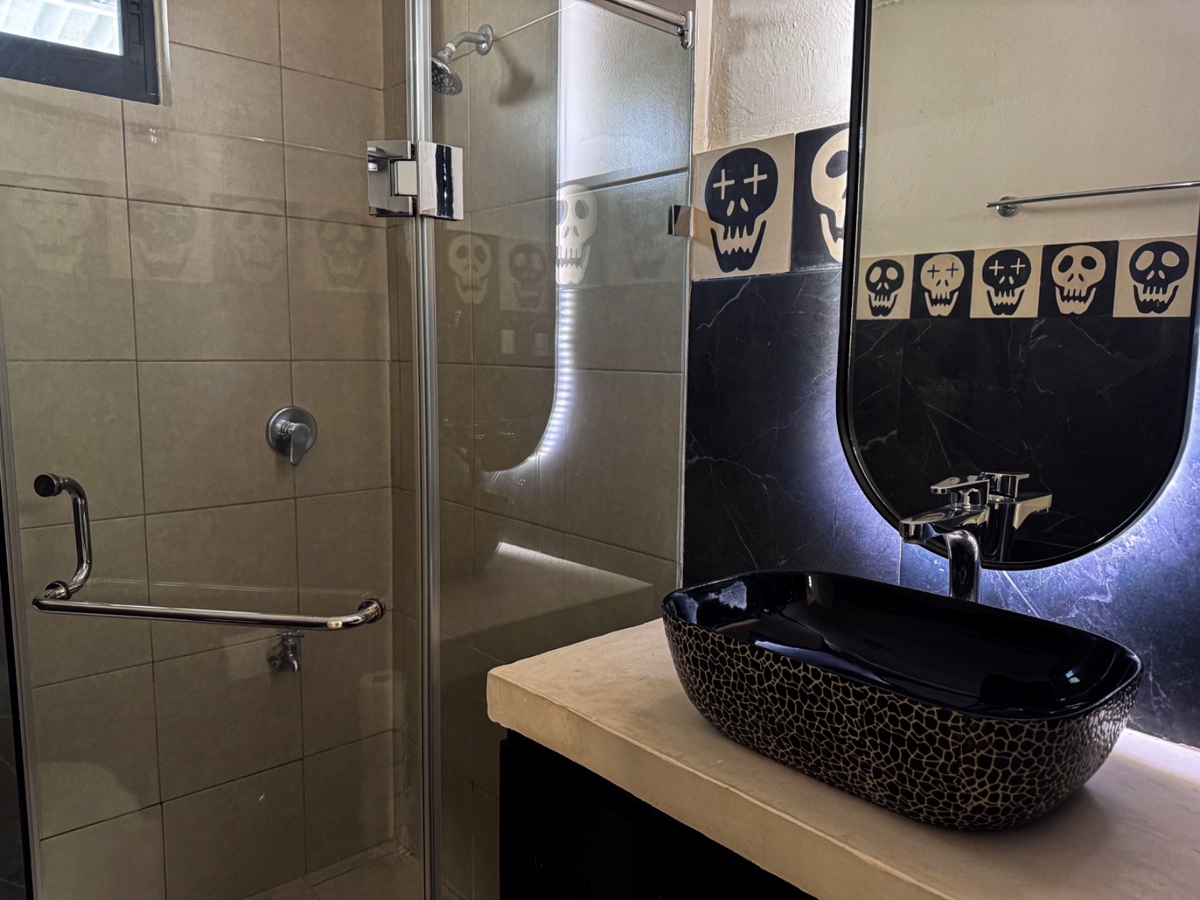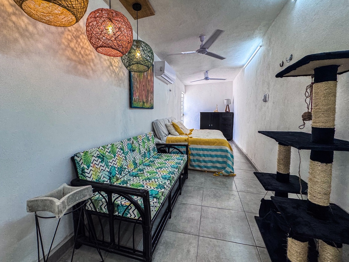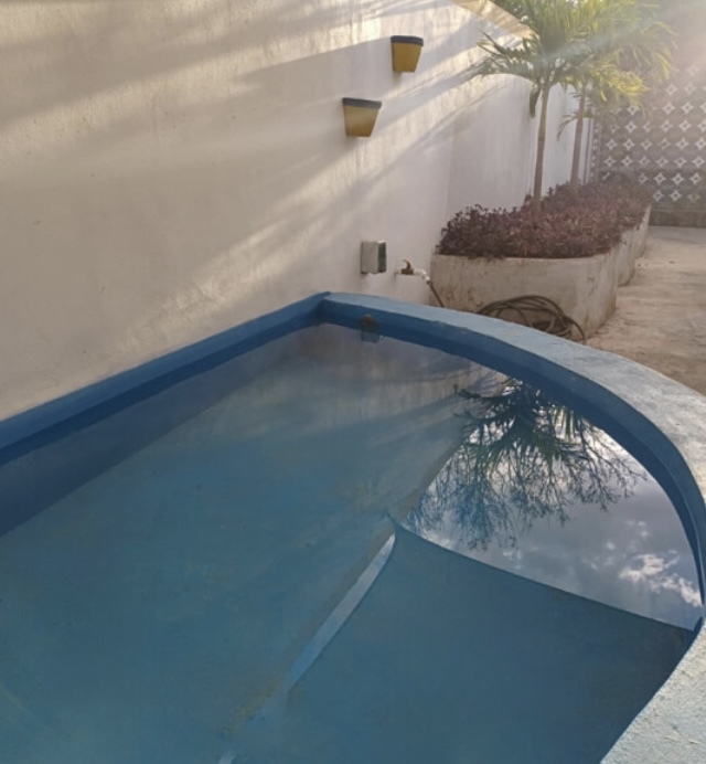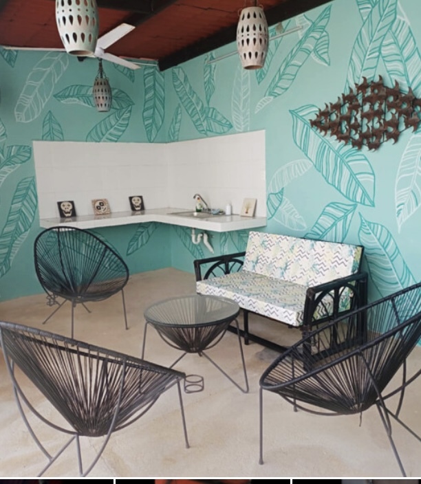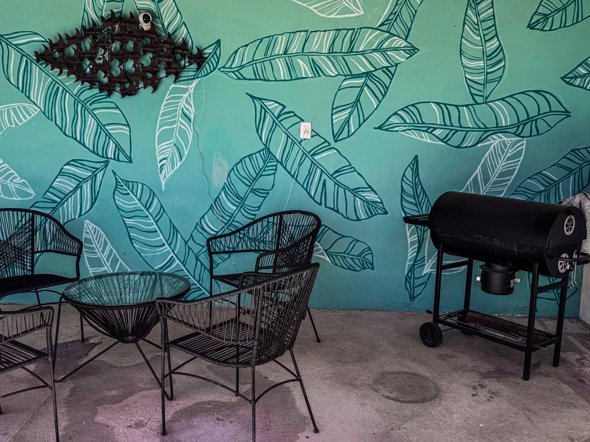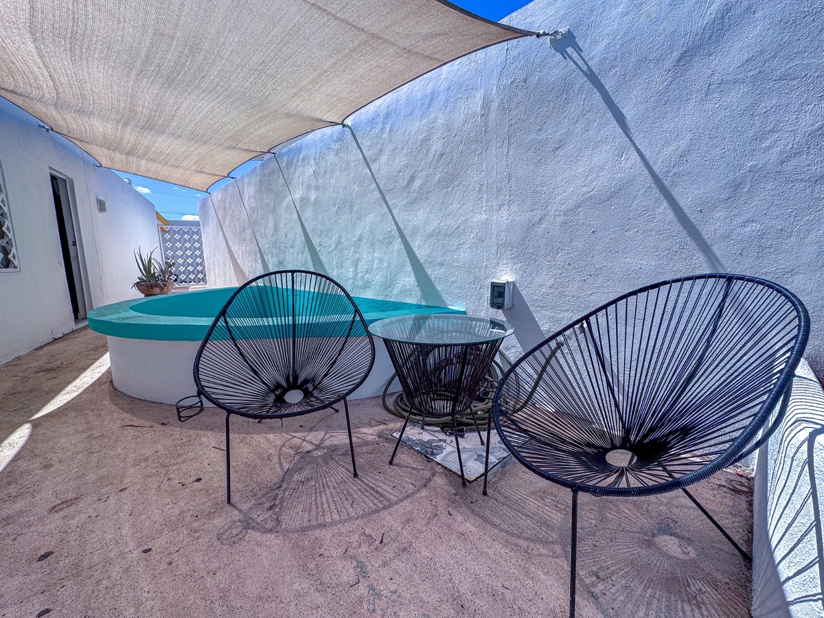 En la parte trasera de la casa, una pérgola de hermoso diseño crea un comedor privado y tropical al aire libre, con encimeras, un fregadero y artísticos motivos de hojas de plátano. Una ducha de lluvia exterior recién instalada ofrece una refrescante experiencia al aire libre, ideal para el cálido clima de Mérida. A pocos pasos, la encantadora piscina de inmersión en forma de media luna ofrece el lugar perfecto para refrescarse y se llena en tan solo 15 minutos con la ayuda de una potente bomba eléctrica.
