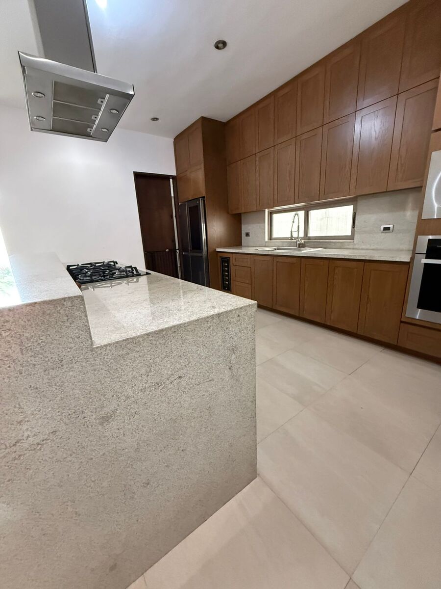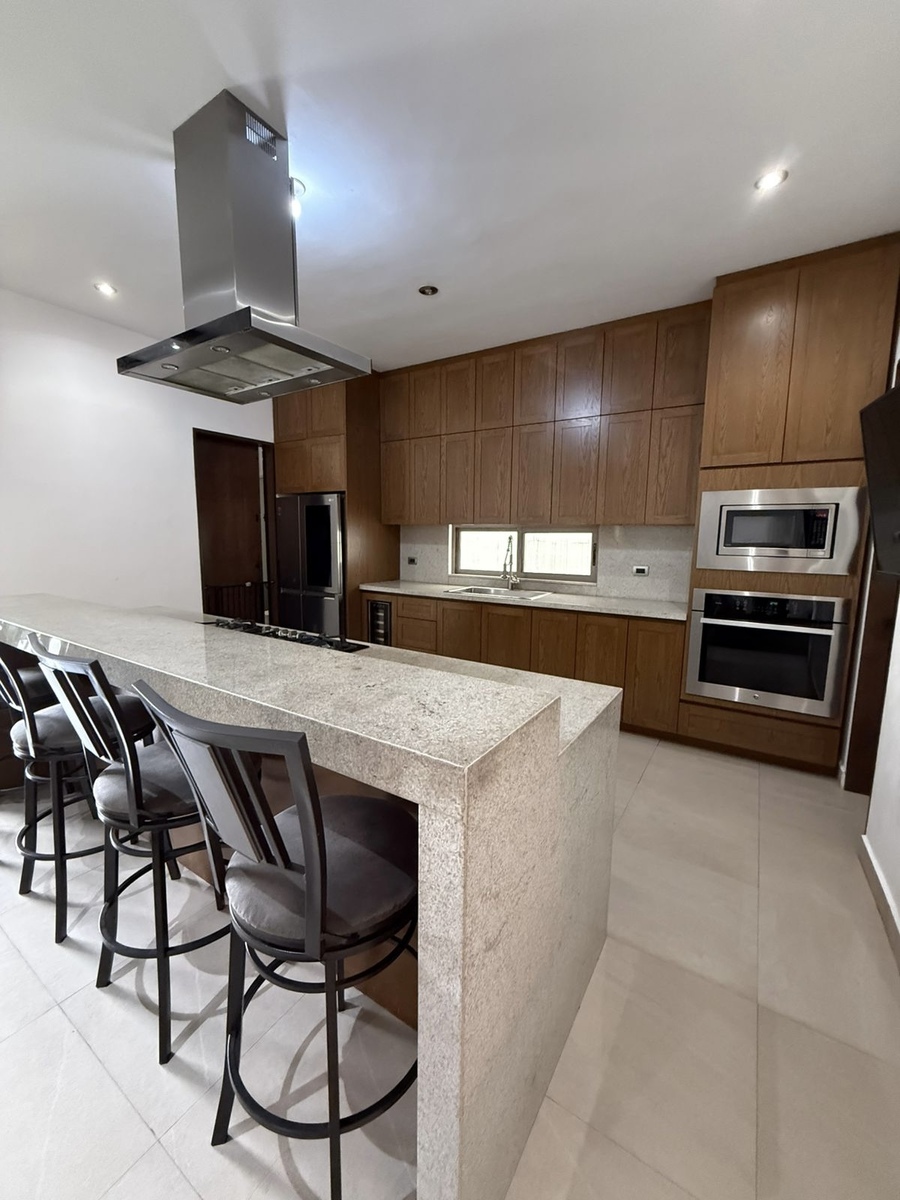 • Cocina de madera con granito, equipada con parrilla, campana, alacena