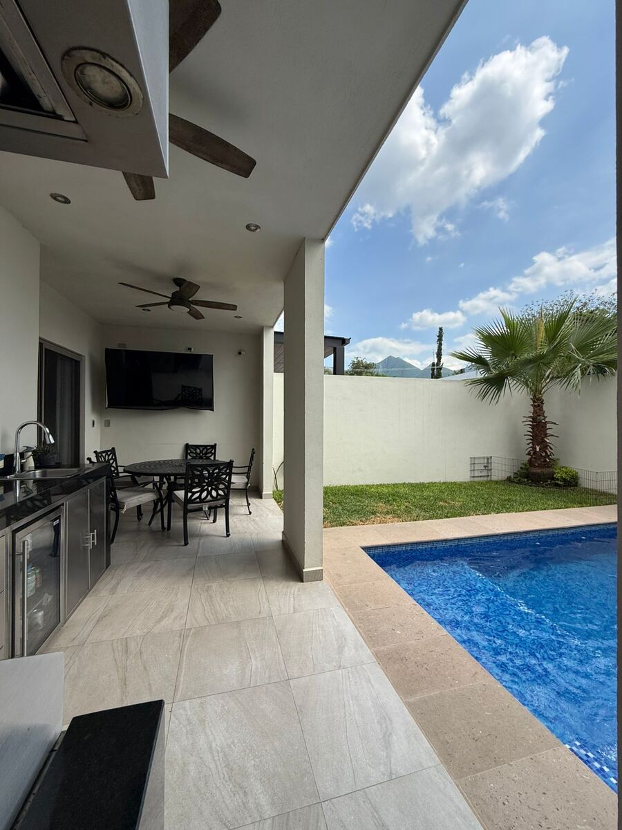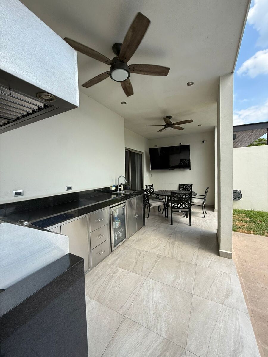 • Patio con área techada incluye asador de acero inoxidable con campana, barra de granito, medio baño