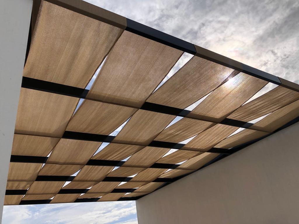 Spacious Roof Garden of 91 m with a carbon steel grill, bar with stainless steel sink, satin high-pressure mixer, pergola with a carbon steel structure covered with acrylic paint through which a heavy-duty and long-lasting shade mesh is woven, half bathroom, and recreational area.
