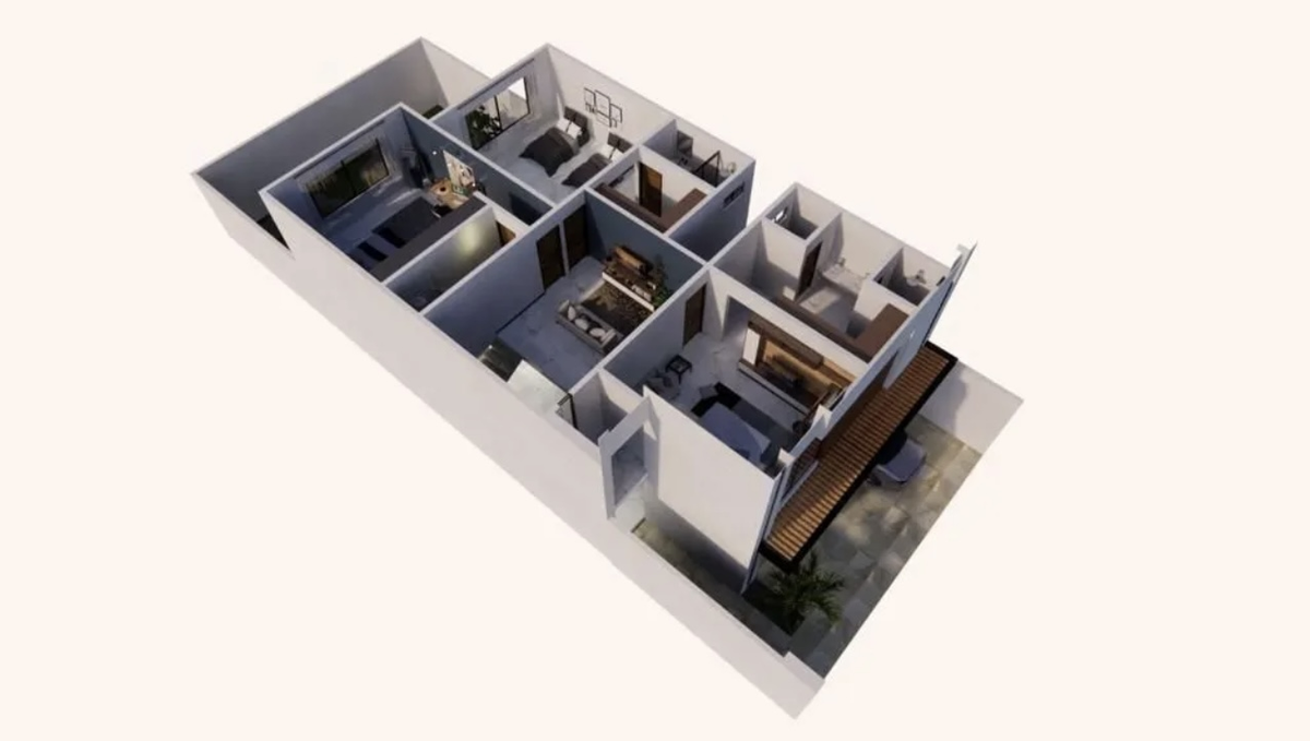 - Recámaras secundarias hacia la contrafachada, una tiene vestidor y otra armario empotrado de pared a pared.