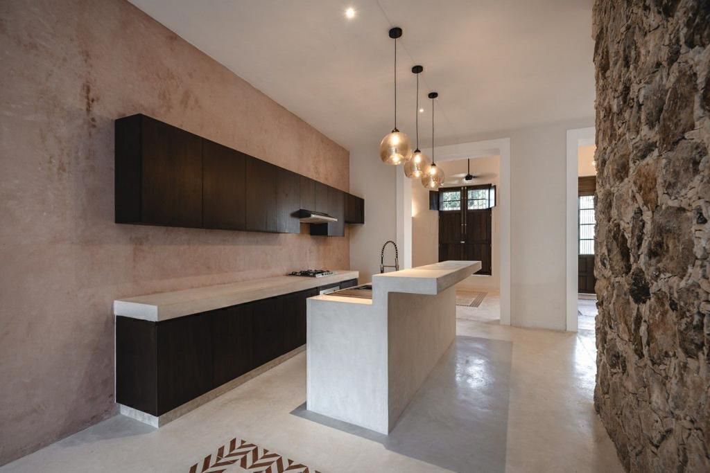 La terraza en el patio, donde se encuentra la alberca junto con un pequeño bar para disfrutar con la familia y amigos.