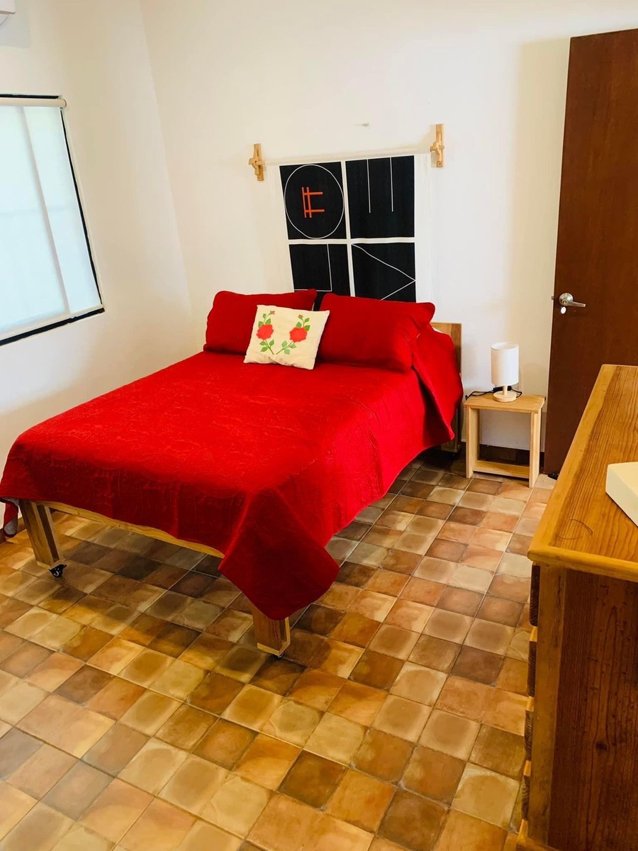 - 1 recámara con aire acondicionado (ropa cama, toallas, colchas, cobija)