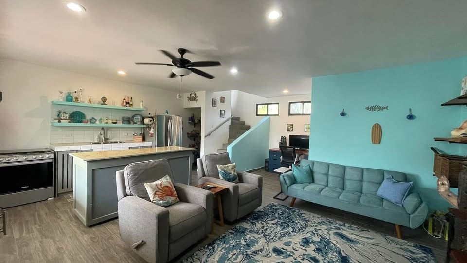 The second home is beautifully designed with living and dining areas on the first floor and a private master suite upstairs. It also includes an additional half bath, a covered terrace for outdoor lounging, and a private rooftop terrace that’s perfect for morning coffee or watching the sunset.