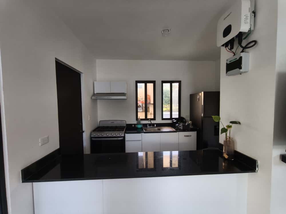 - Cocina vestida con gavetas, alacena y meseta de granito