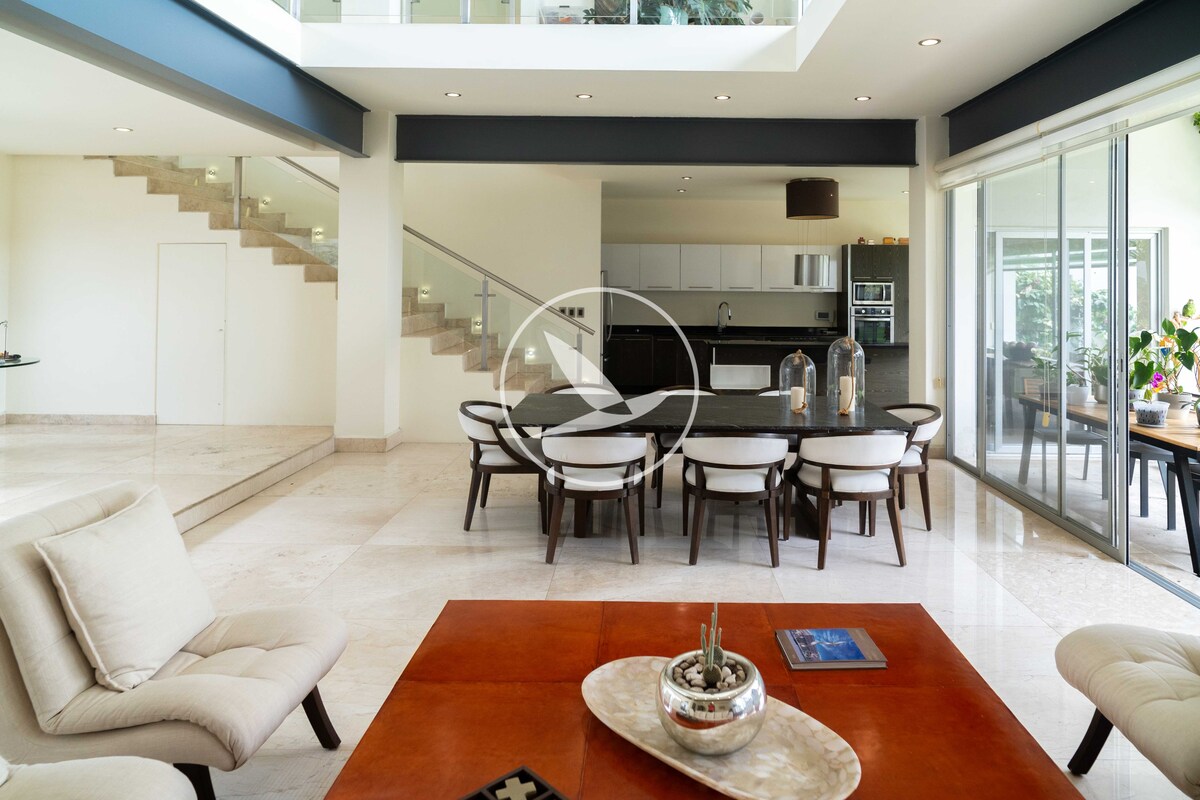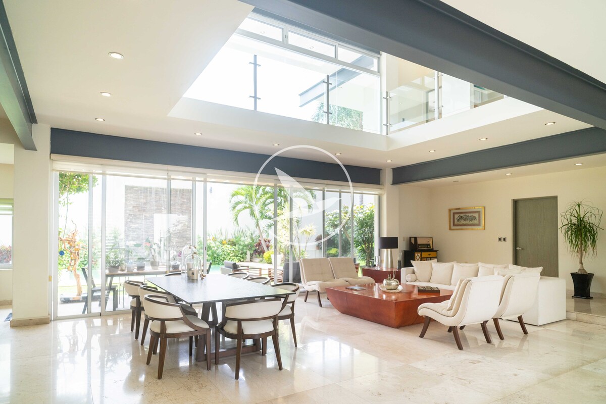 - Estancia abierta (open concept): cocina, sala y comedor con doble altura
