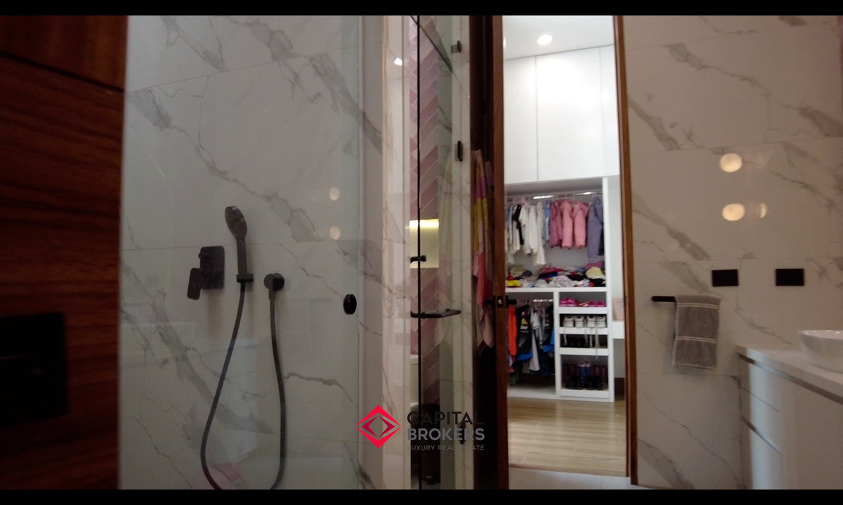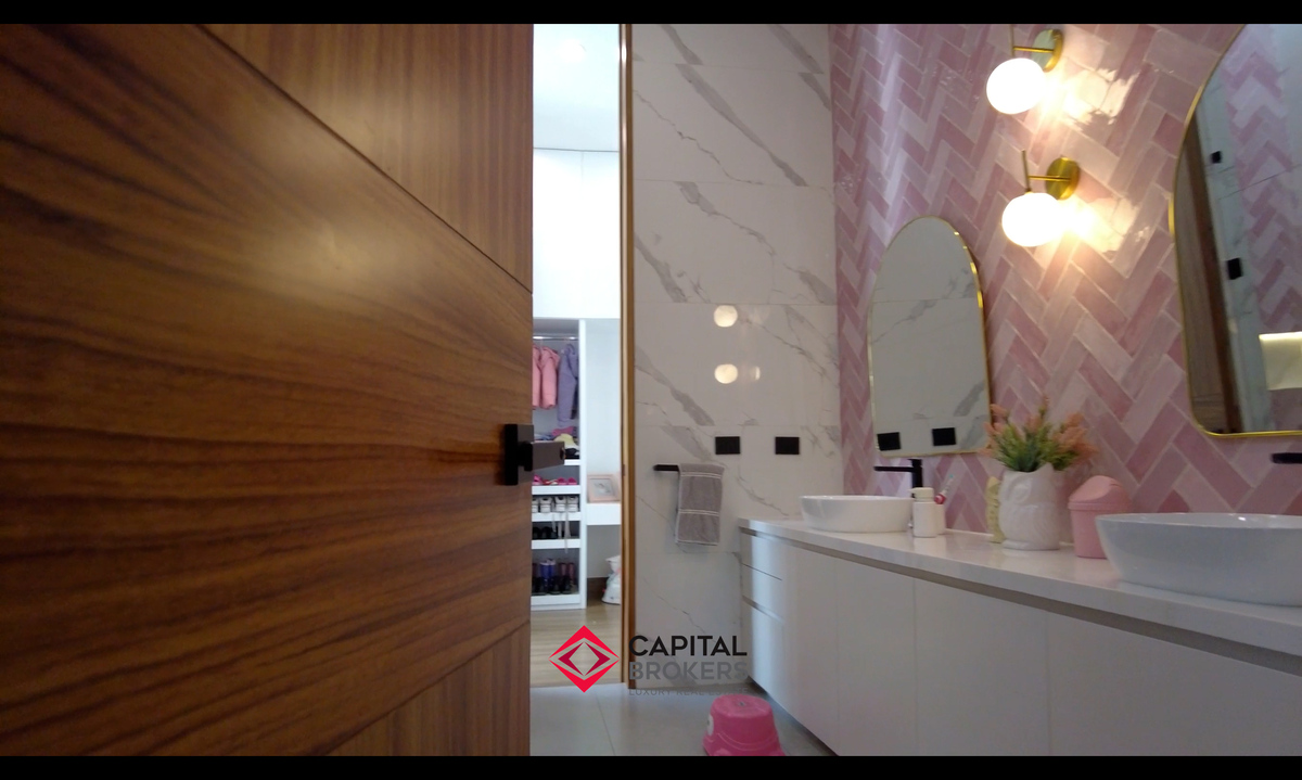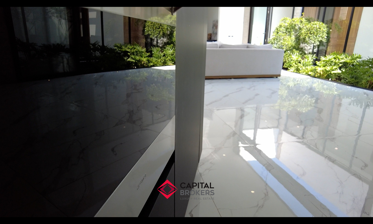 - Exterior impresionante: Jardín con iluminación, riego por aspersión, terraza con pérgola y espejo de agua.