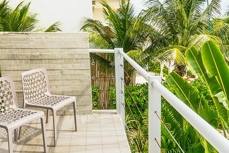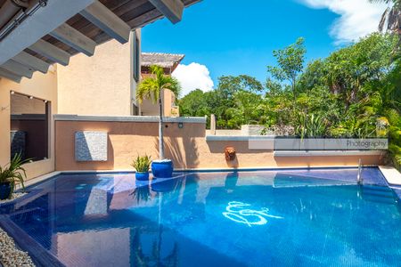 su maravillosa terraza con jacuzzi, conecta a senderos de áreas comunes donde disfrutarás albercas , cancha de tenis , área de juegos infantiles.