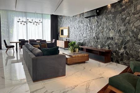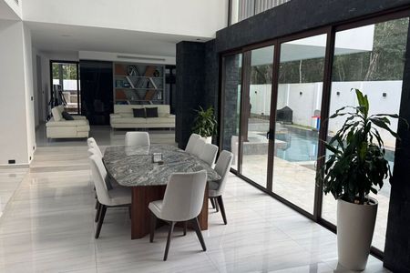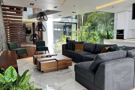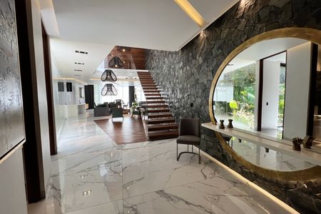 Entrada espectacular con un bello espejo de agua , maravillosa doble altura y un grandioso jardín interior .