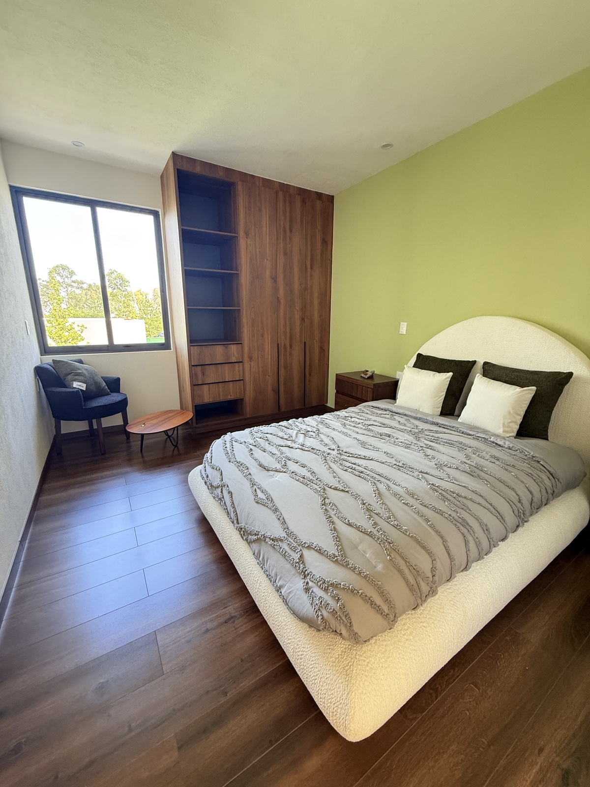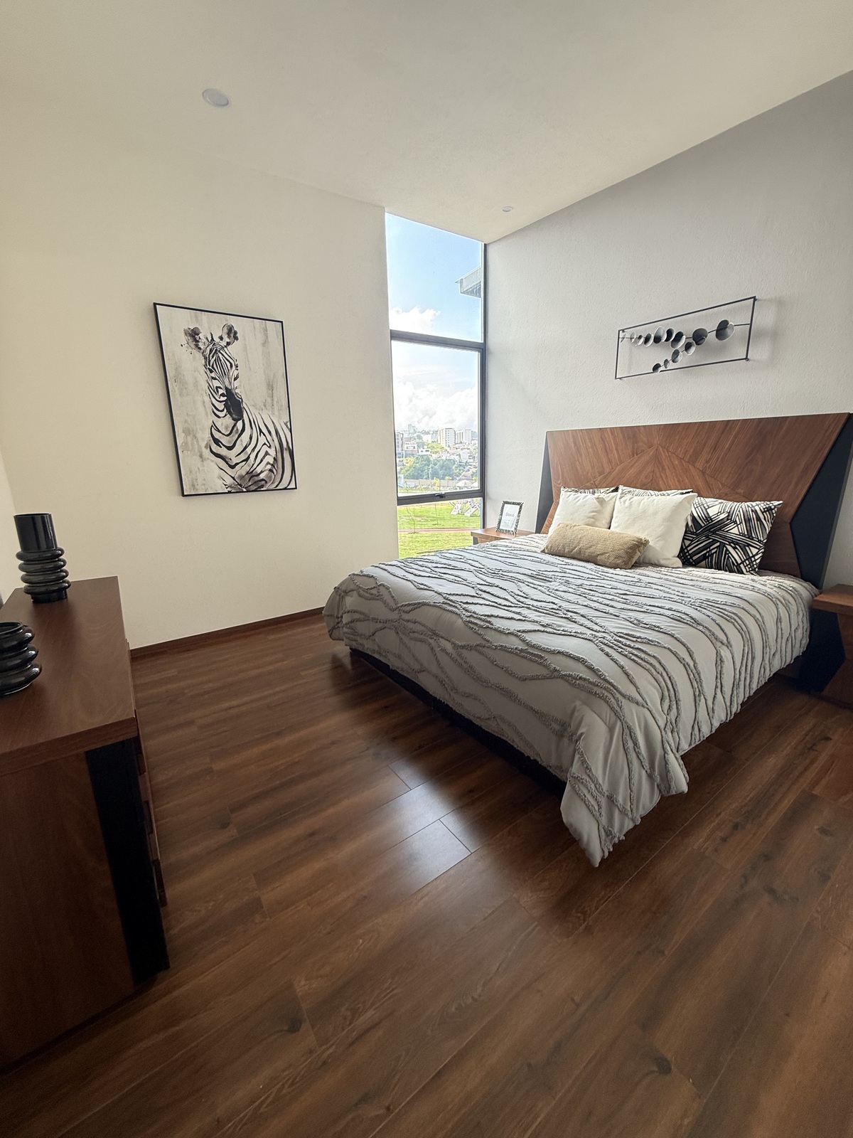 The property offers parking for 2 cars, stone and wood details that combine modernity with warmth, and an open design that conveys comfort and elegance in every corner.Esta hermosa casa de diseño contemporáneo combina elegancia, amplitud y funcionalidad. En la planta baja encontrarás una recámara con baño completo privado, ideal para visitas o para quienes buscan mayor comodidad, además de una sala y comedor con ventanales de piso a techo que llenan los espacios de luz natural. La cocina integral destaca por su estilo moderno y acabados en madera, conectando con el área social y el jardín de buen tamaño que aporta frescura y amplitud.