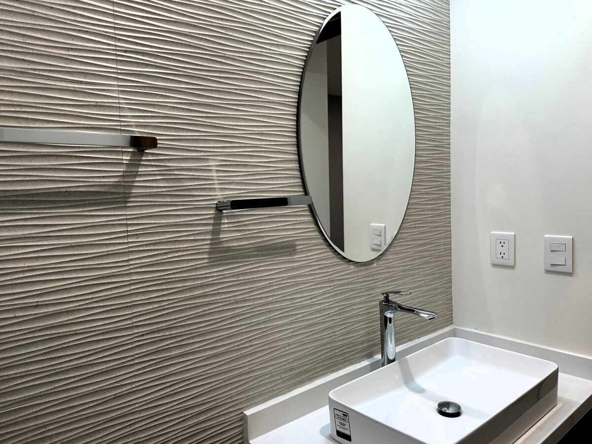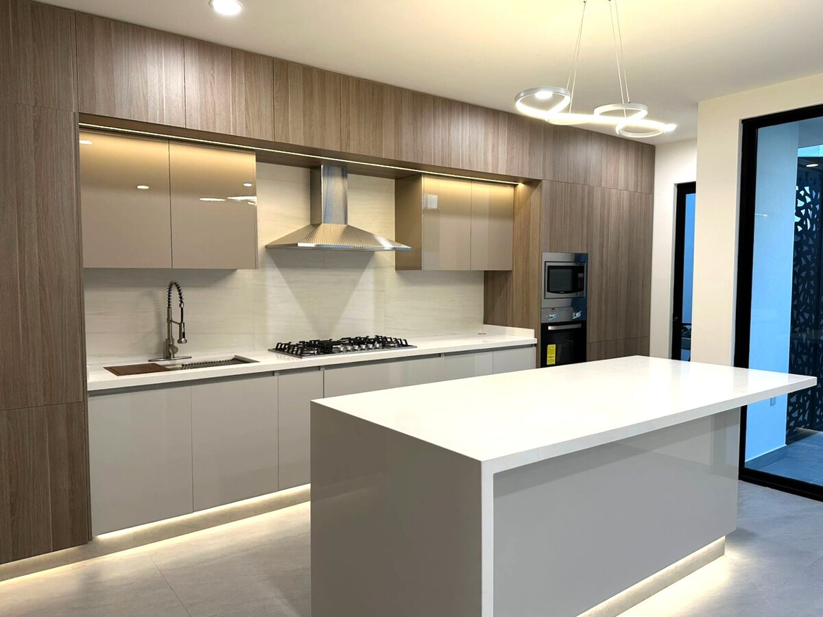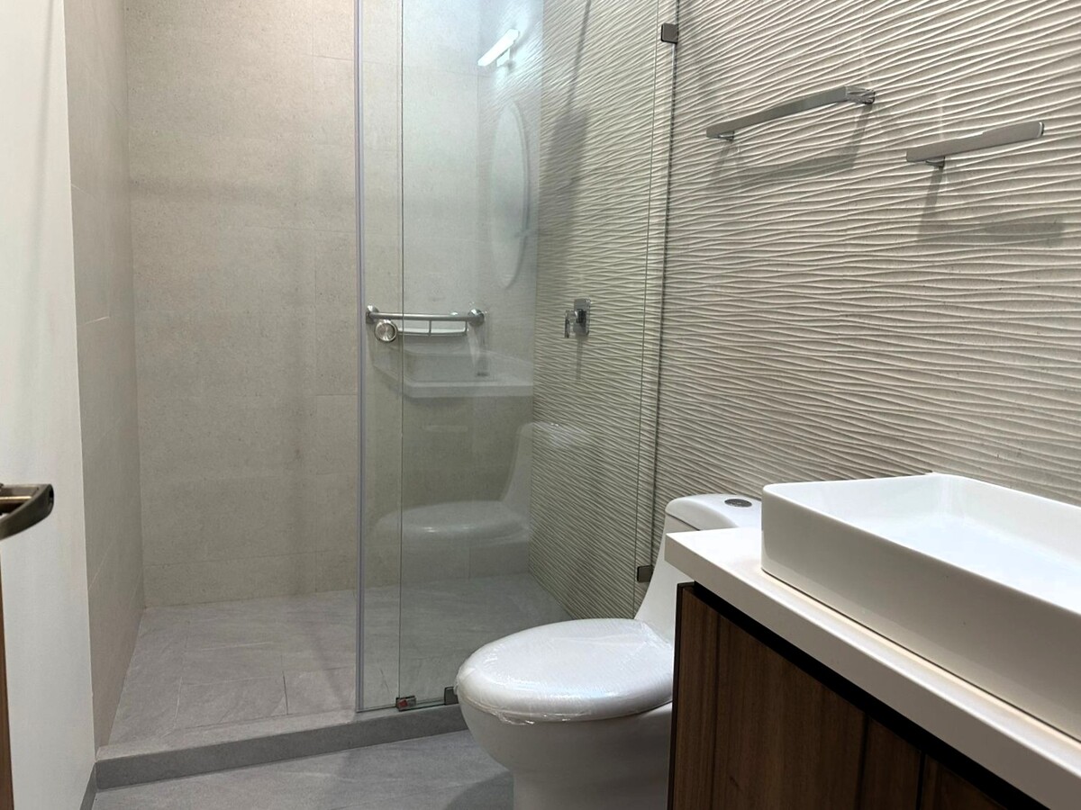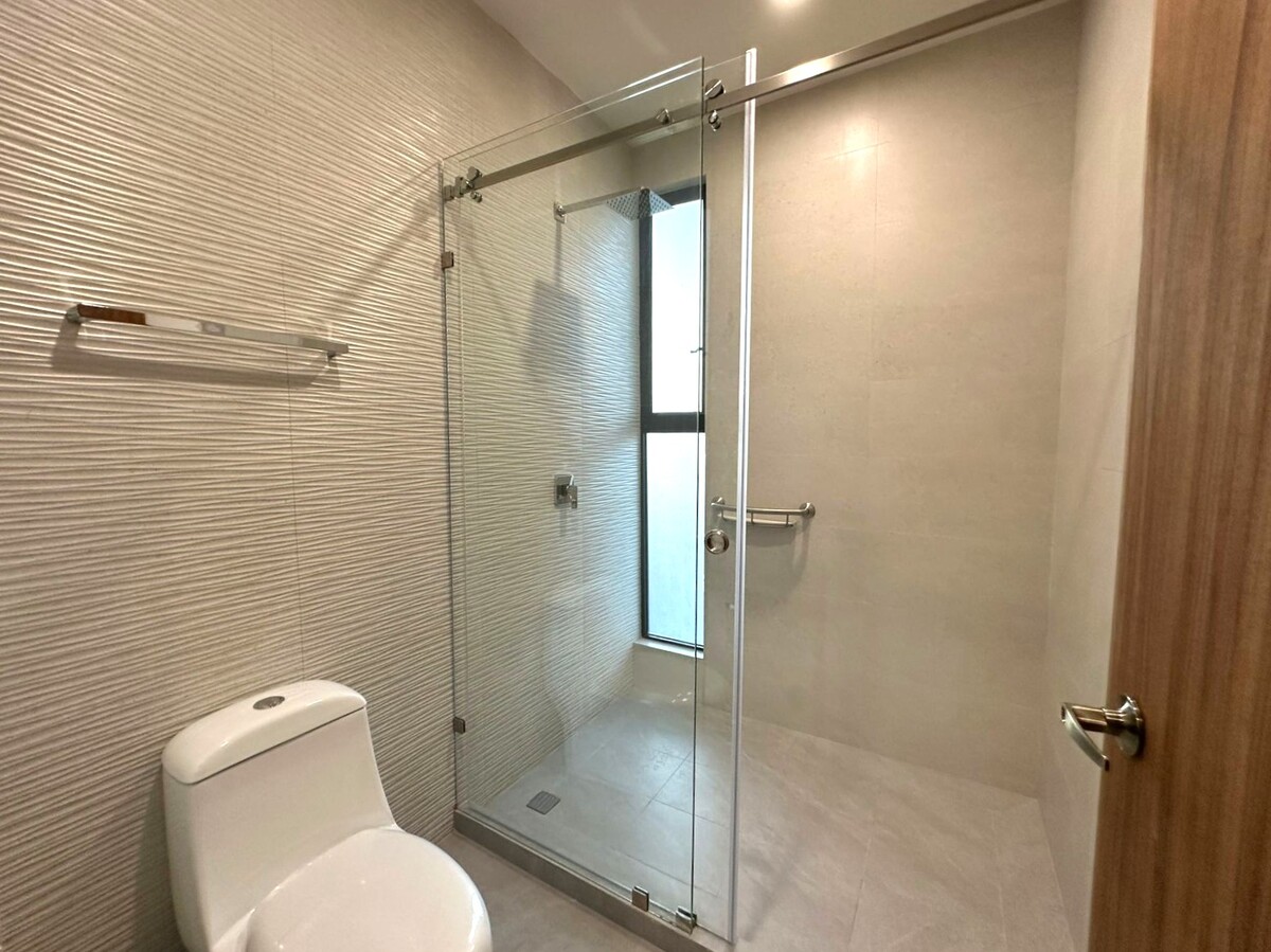 En planta alta; Área de TV o estudio, recamara principal con gran vestidor con múltiples compartimentos y espacios, baño propio con cancelería de vidrio templado y herrajes de acero inoxidable y tocador con dos lavabos. Dos recámara secundarias con amplios closets con escritorio y gran calidad de materiales y espacios.