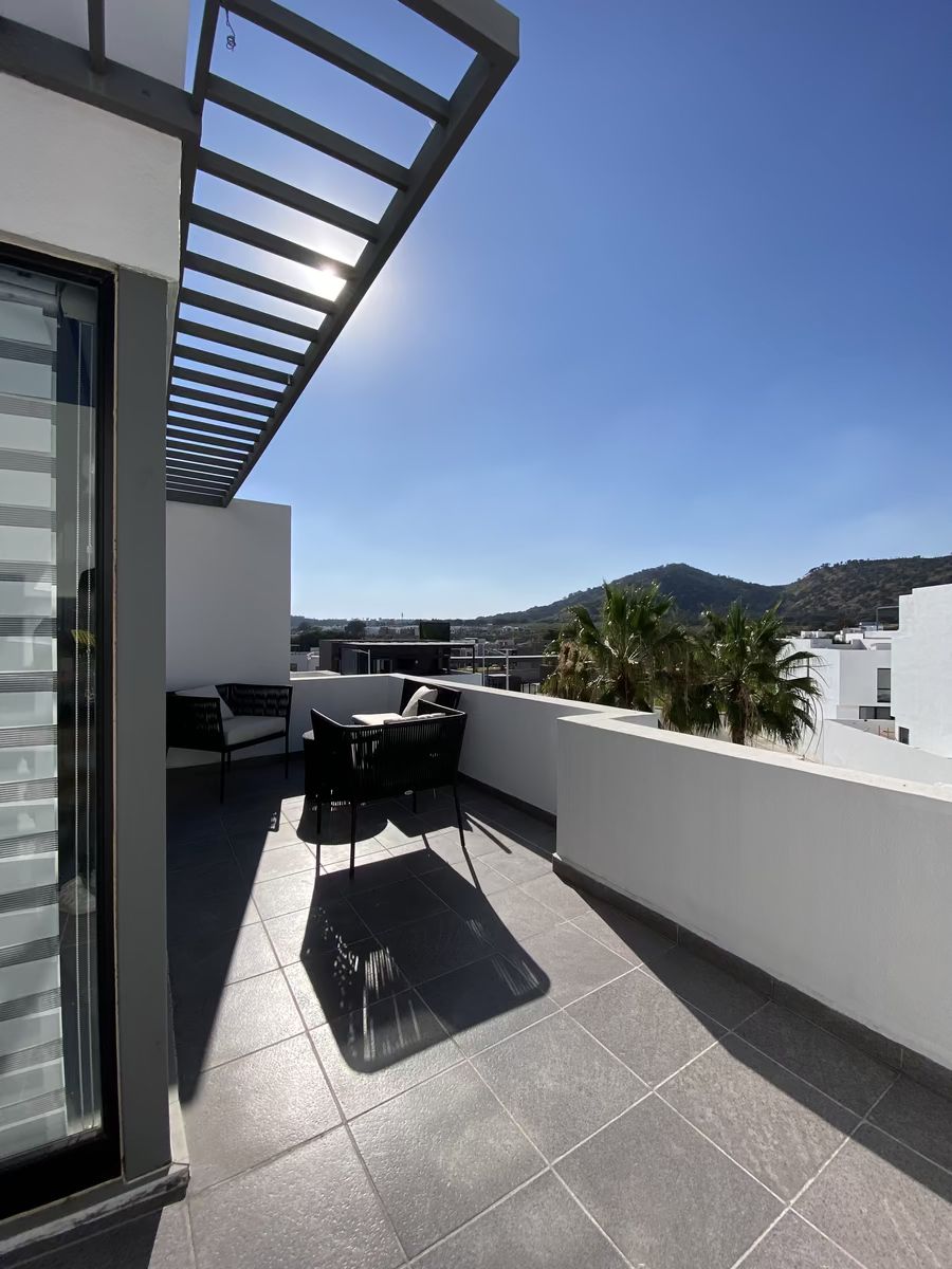 Tercer nivel: Recámara principal con baño y vestidor, Terraza con pergolado y azotea para servicios.