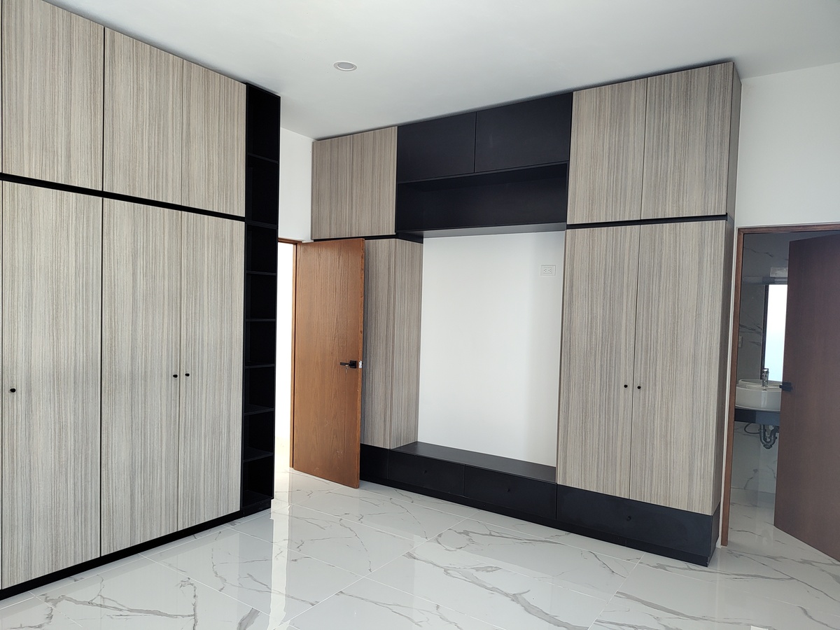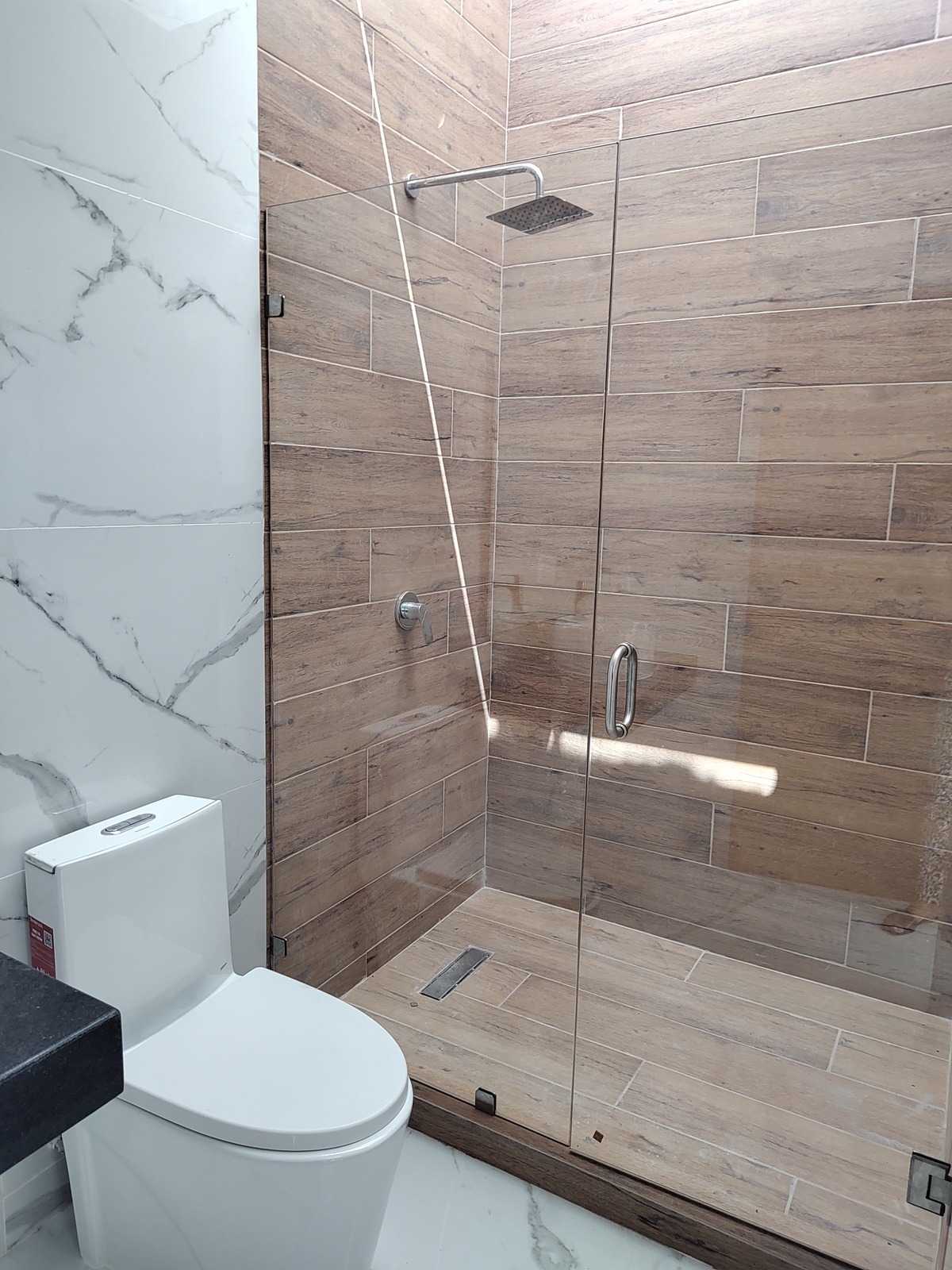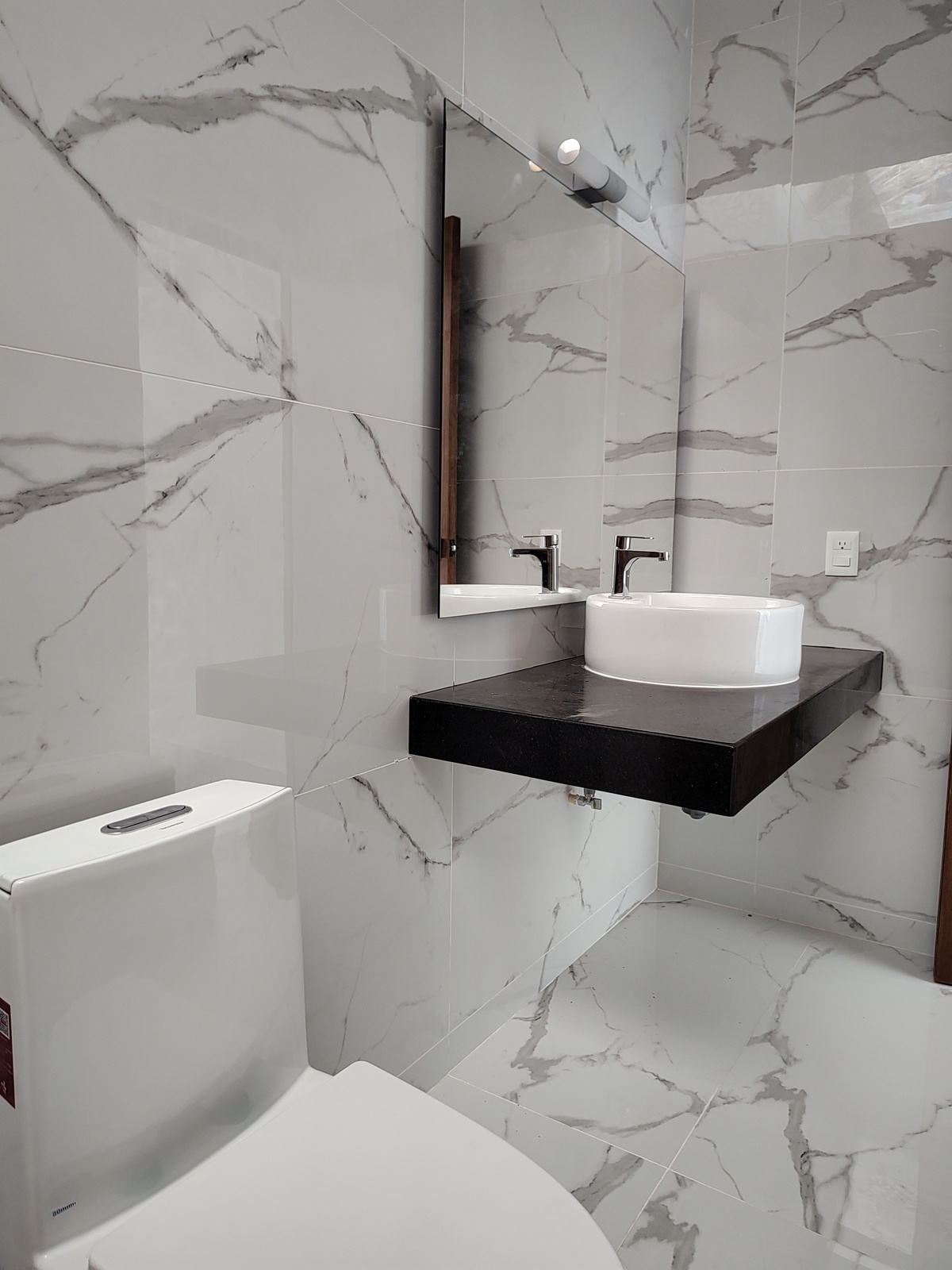 2 baños y medio, equipados con mesetas de granito, vidrio templado en regadera, espejos.